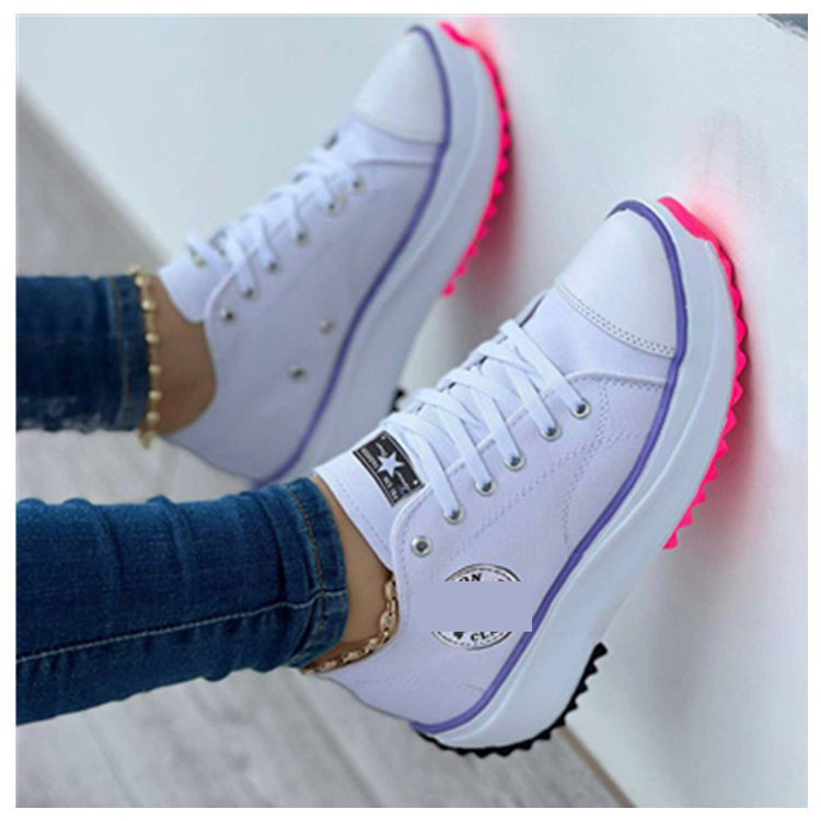 2022 새로운 재고 신발 여성의 봄과 가을 캔버스 신발 통기성 하이탑 캐주얼 여성 신발 두꺼운 밑창 레이스 업 신발스토어 가기