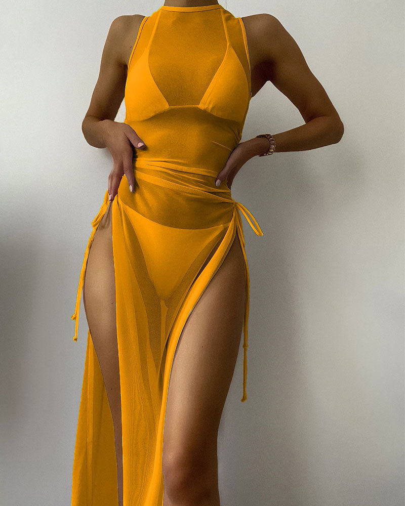 2024 새로운 AliExpress 수영복 선스크린 블라우스 비키니 여성 유럽과 미국의 멀티 컬러 비치 원피스 수영복 3 피스 세트