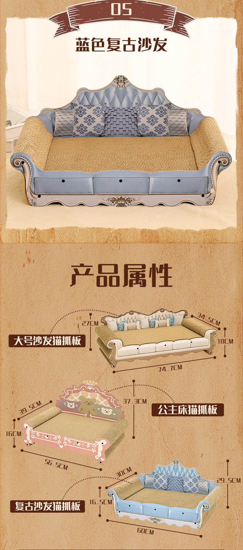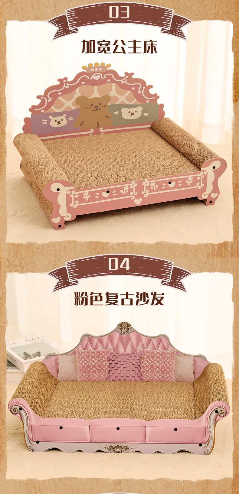 【品名】:HOOPET 公主床猫抓板/(粉色/蓝色)复古猫抓板/(银色/金色)大号沙发猫抓板