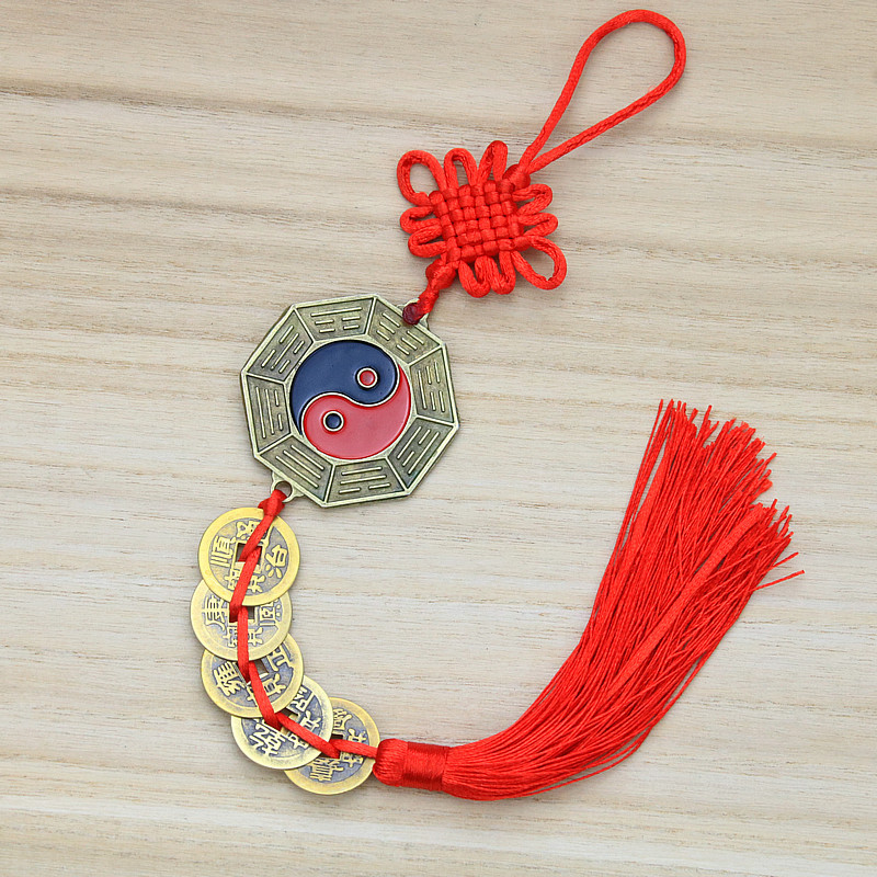 도매 컬러 팔각형 스퀘어 8 다이어그램 미러 펜던트 리얼 구리 5 황제 돈 펜던트 황동 5 황제 구리 자동차 펜던트