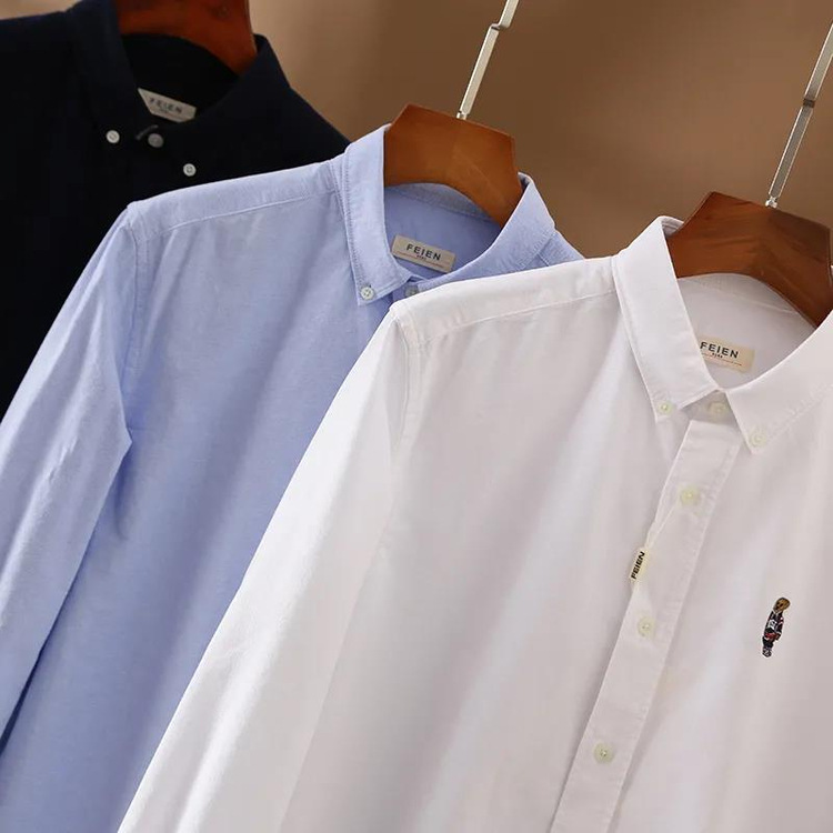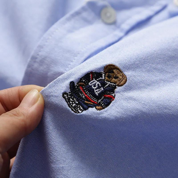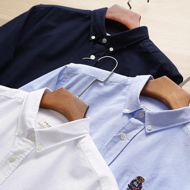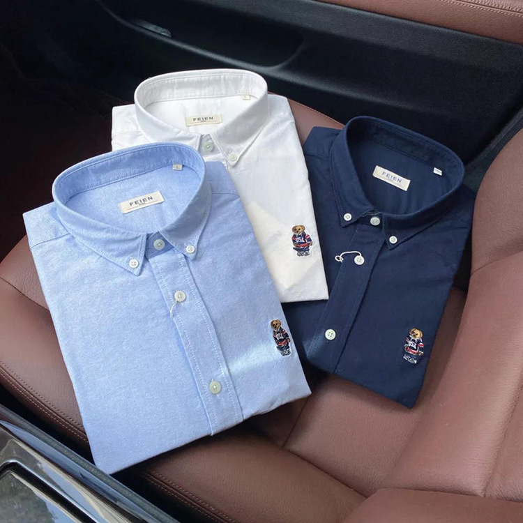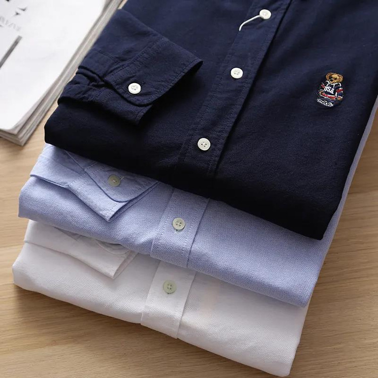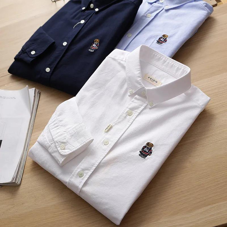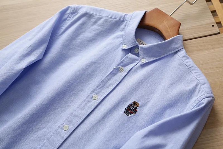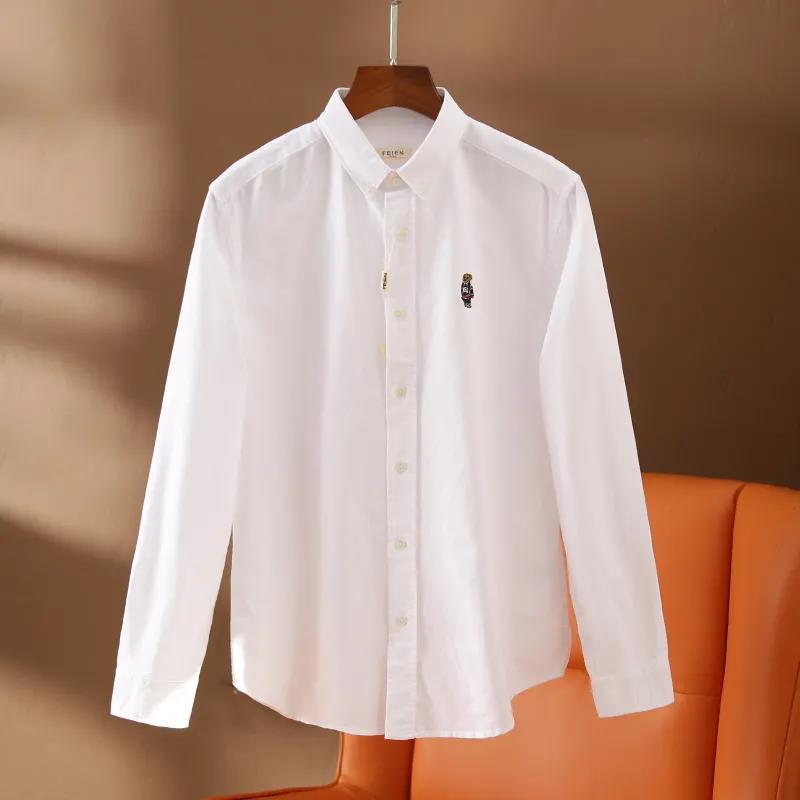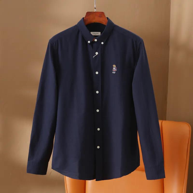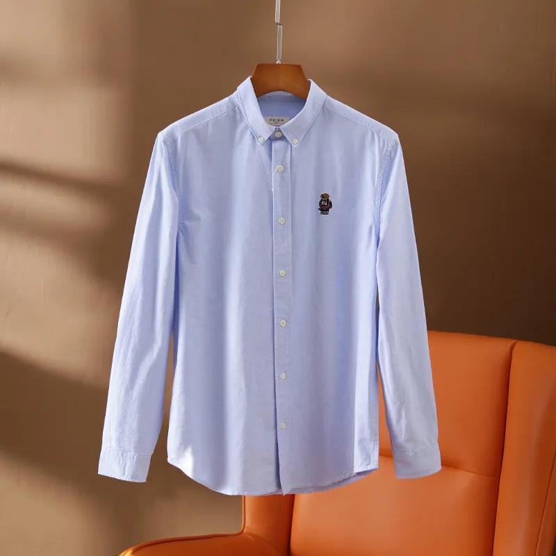 100 옥스포드 + 곰 자수! 오리지널 컷 라벨 가을과 겨울 남성용 100 면 단색 긴팔 셔츠 트렌디