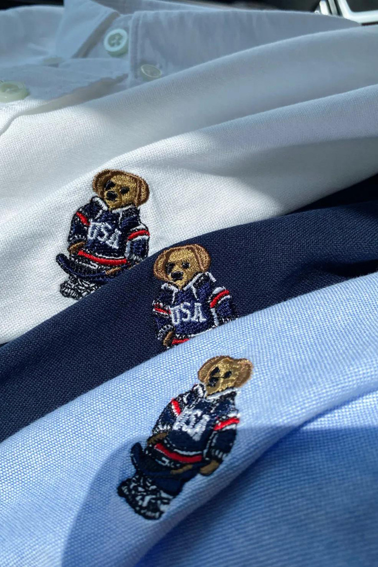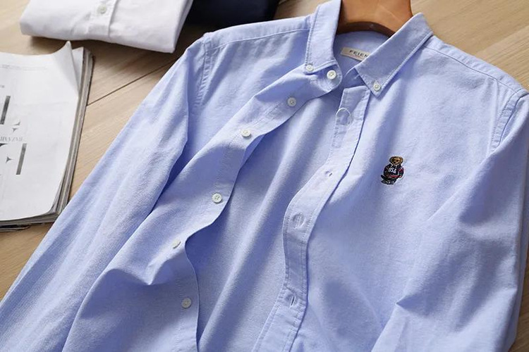 100 옥스포드 + 곰 자수! 오리지널 컷 라벨 가을과 겨울 남성용 100 면 단색 긴팔 셔츠 트렌디스토어 가기