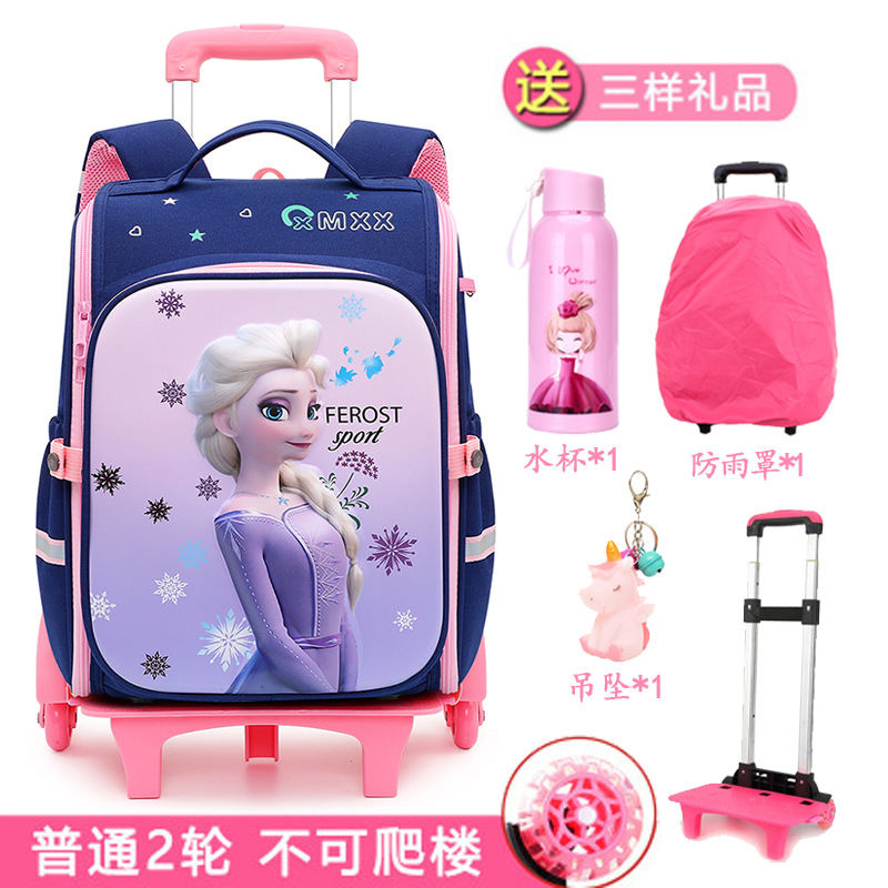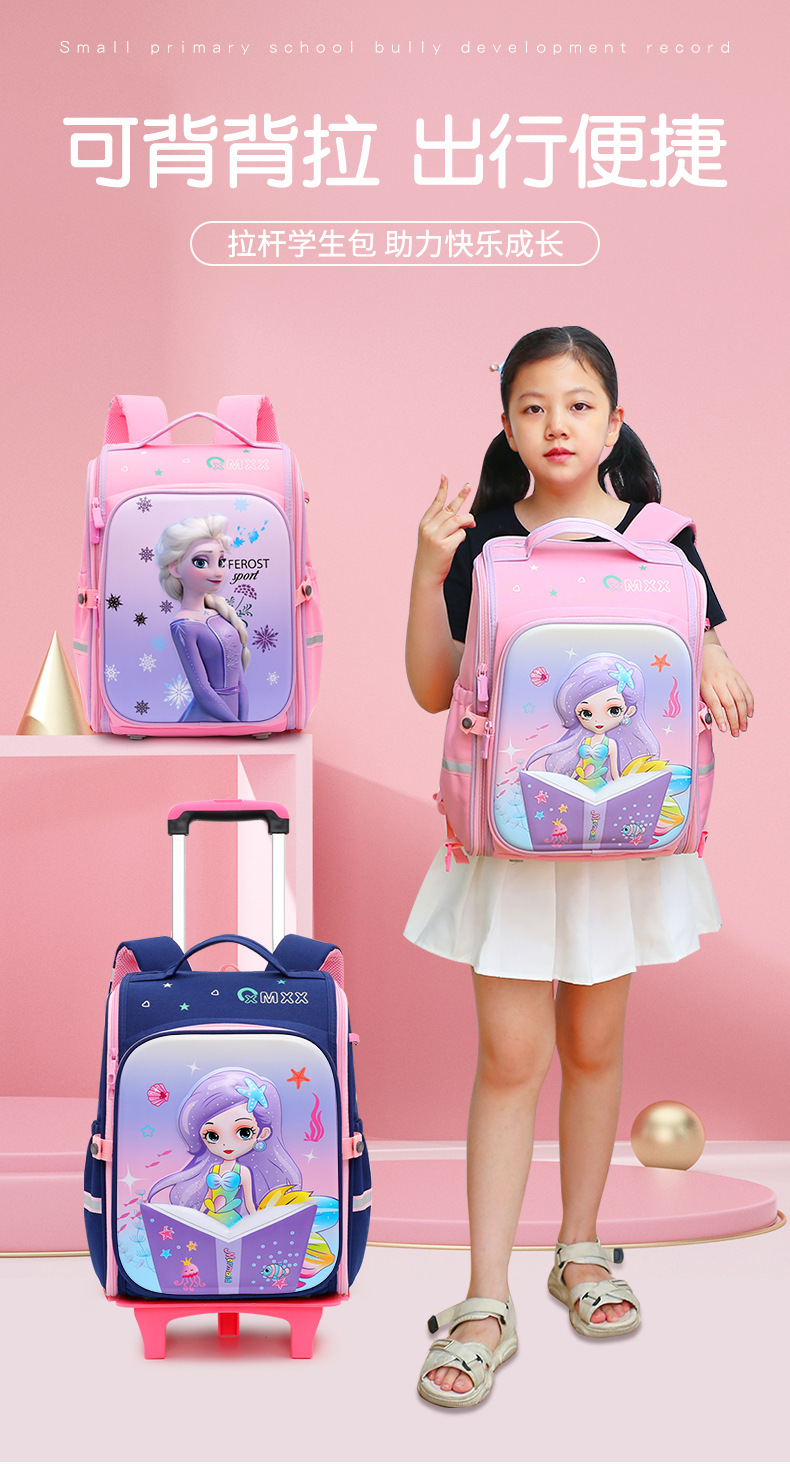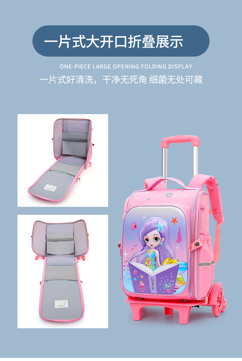 어린이 트롤리 책가방 남학생과 여학생을 위한 6 륜 책가방 1-3-6 등받이-초등학생을 위한 이중 목적 이동식 계단 등반 책가방