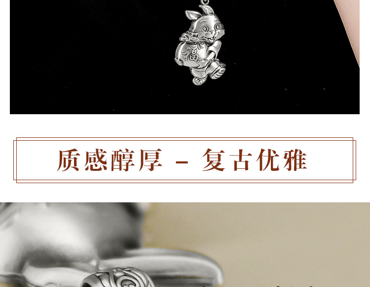 999 스털링 실버 토끼 펜던트 남자와 여자의 발 실버 고대 파 럭키 백 행운의 토끼 인생의 올해 토끼 목걸이 매달려 장식품스토어 가기