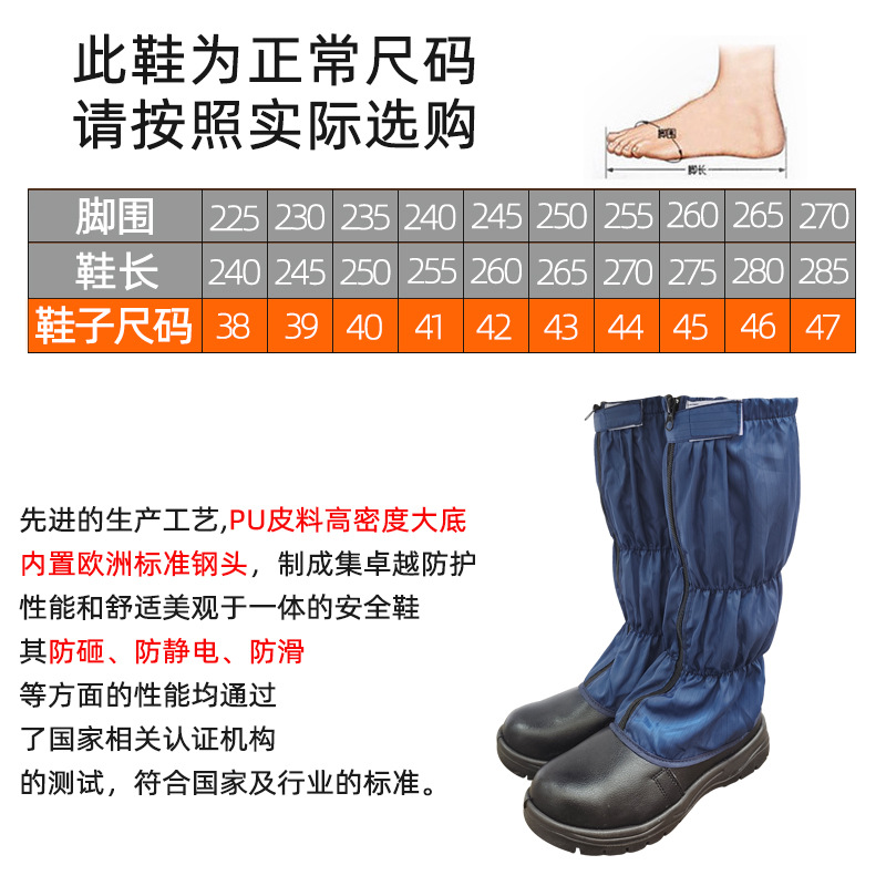 정전기 방지 신발 하이 튜브 블랙 오렌지 스틸 Baotou 스매싱 방지 클린 룸 Pu 바닥 클린룸 노동 보호 신발 긴 튜브