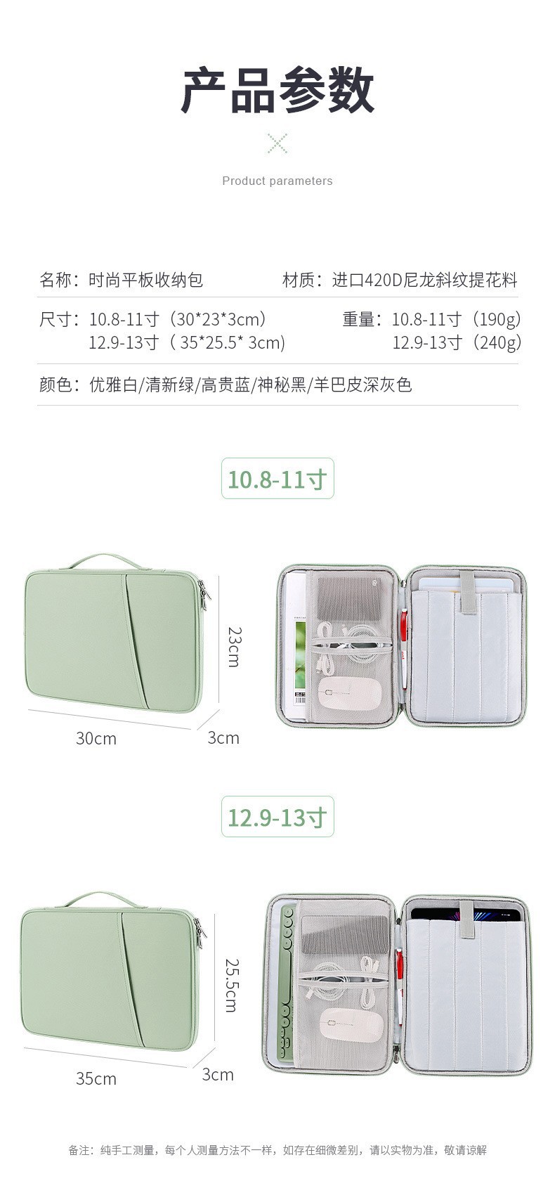 IPAD 태블릿 가방 12.9 인치 노트북 가방 surfacego2 내부 가방 생체 내 태블릿 보관 가방스토어 가기