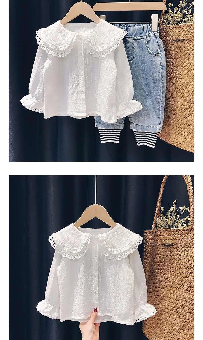 여자 셔츠 봄, 가을 얇은 흰색 셔츠 카디건 여자 한국 스타일 캐주얼 긴팔 스타일 탑 셔츠스토어 가기