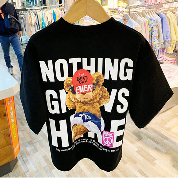 면 어린이 귀여운 아기 만화 반팔 티셔츠 여름 2024 새로운 스타일 프라이드 스트리트 중소 소년 소녀 탑 셔츠스토어 가기