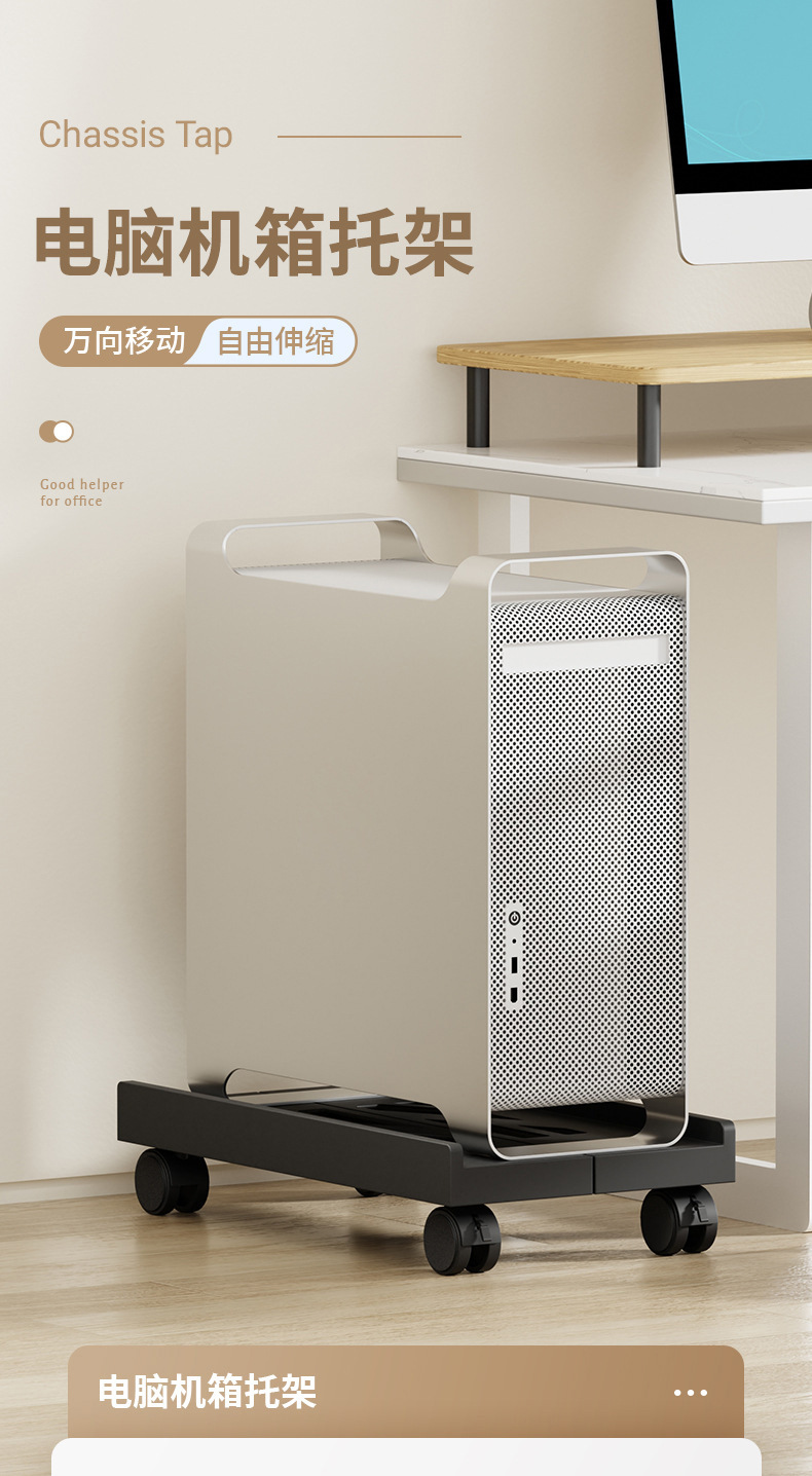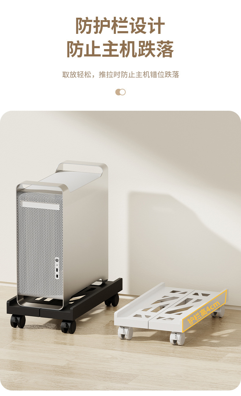 이동식 접이식 섀시 베이스 데스크탑 컴퓨터 케이스 보관함(플러그인 스트립 포함) 사무용 컴퓨터 호스트 브래킷스토어 가기