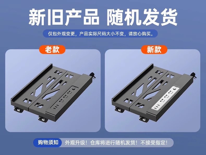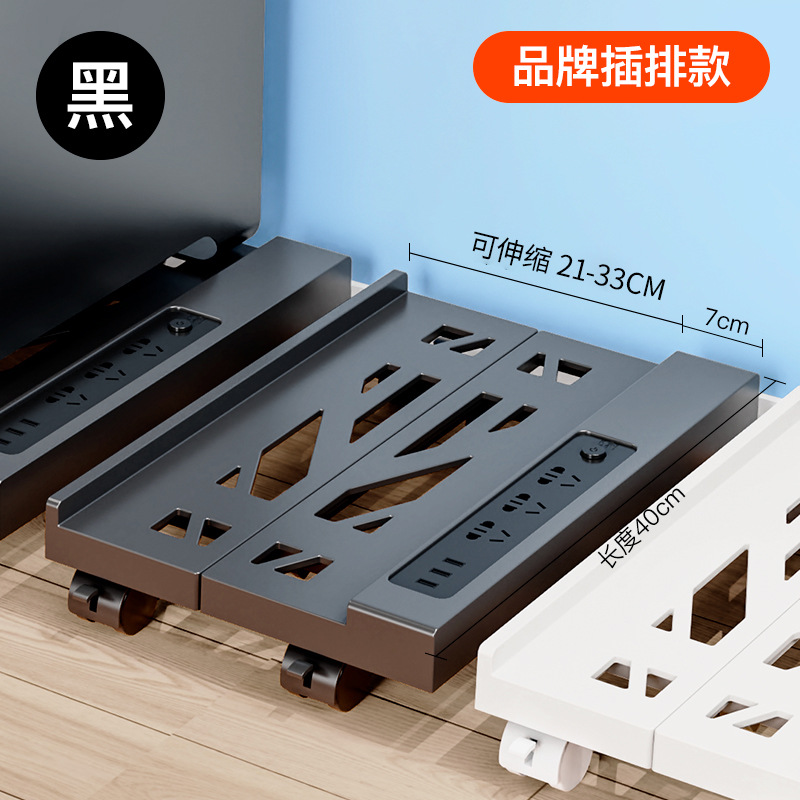 이동식 접이식 섀시 베이스 데스크탑 컴퓨터 케이스 보관함(플러그인 스트립 포함) 사무용 컴퓨터 호스트 브래킷