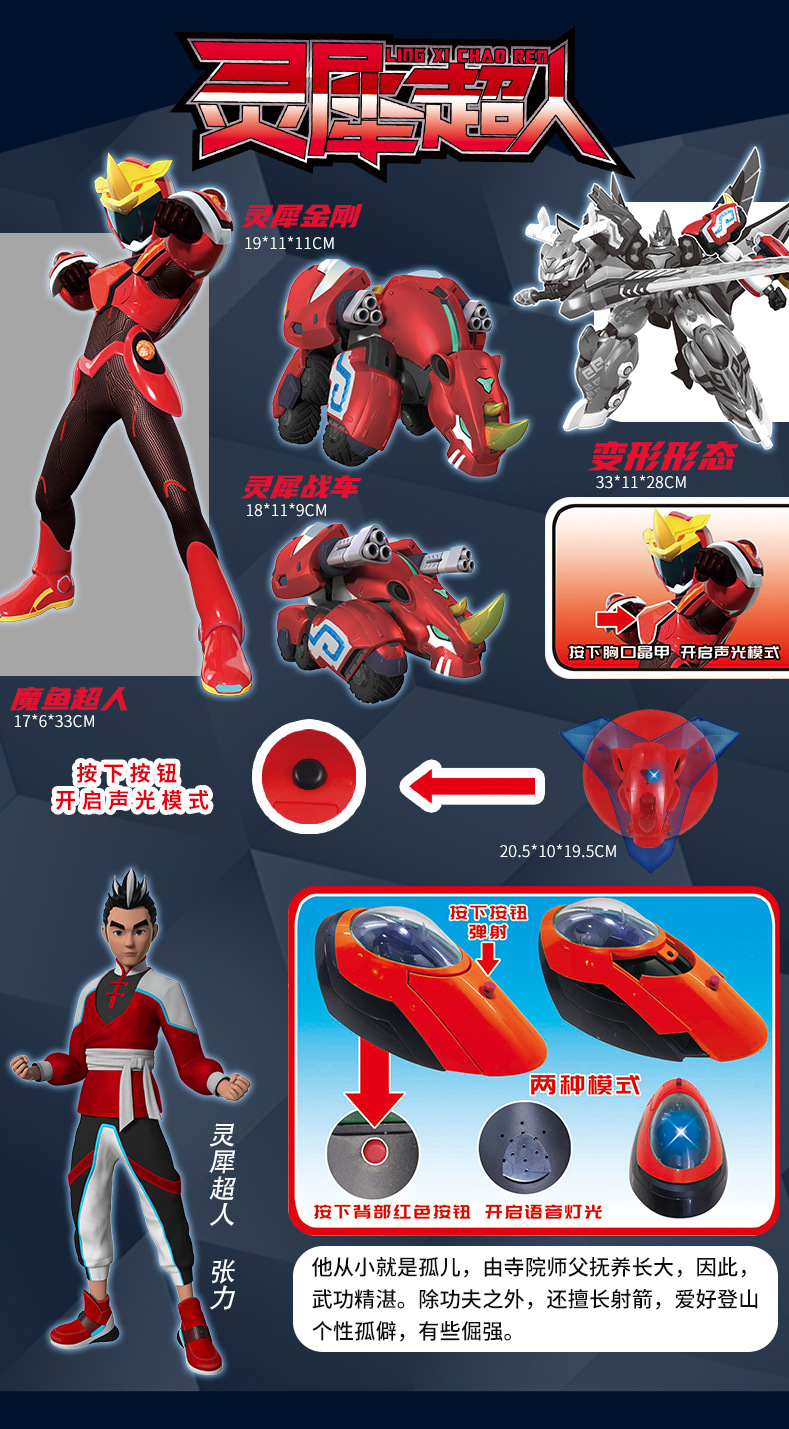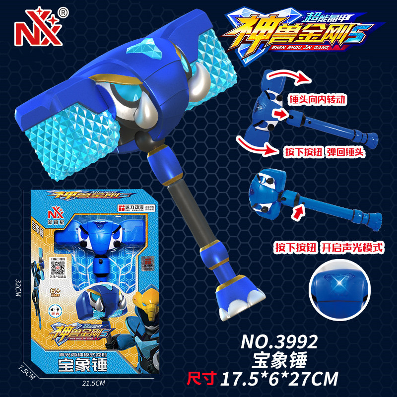 신비한 짐승 킹콩 변신 장난감 로봇, 신성한 사슴, 총, 신성한 호랑이, 검, 보물 코끼리 막대기, 빛과 소리가 나는 소년용 변신 장난감