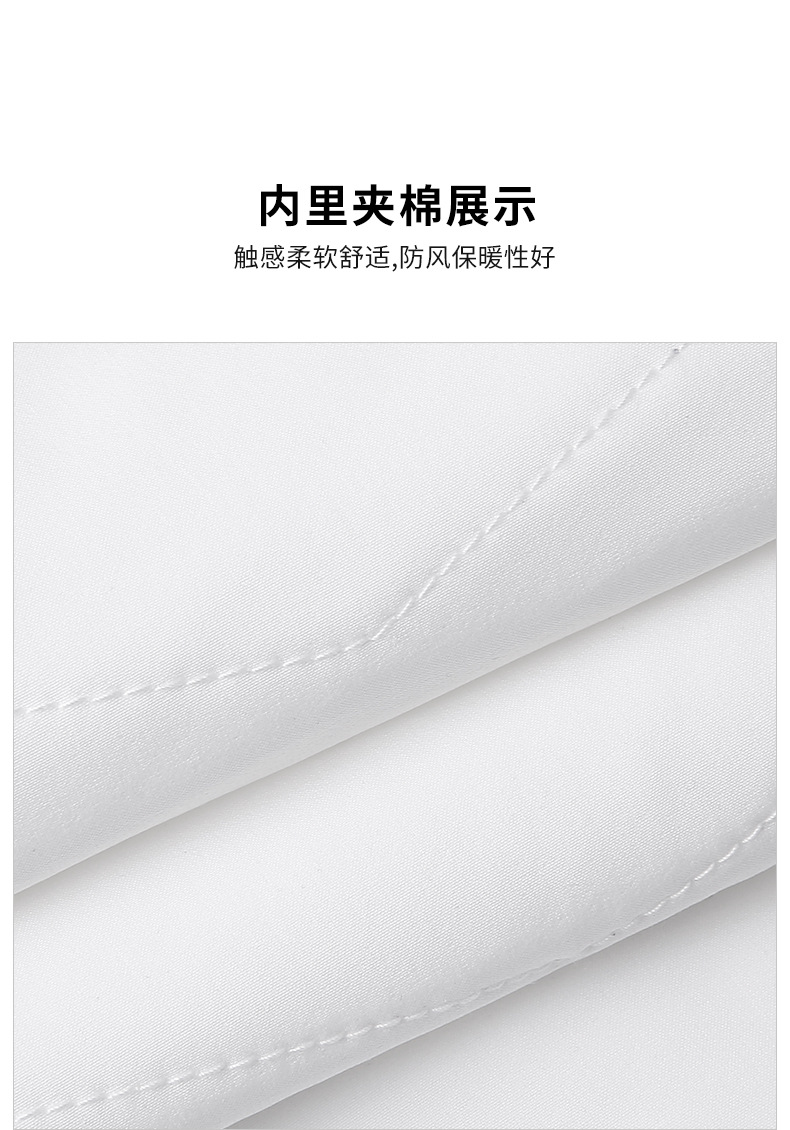 产品介绍1内里夹棉,触感柔软舒适,防风保暖性好