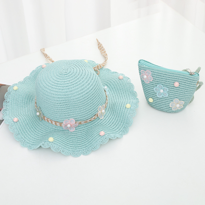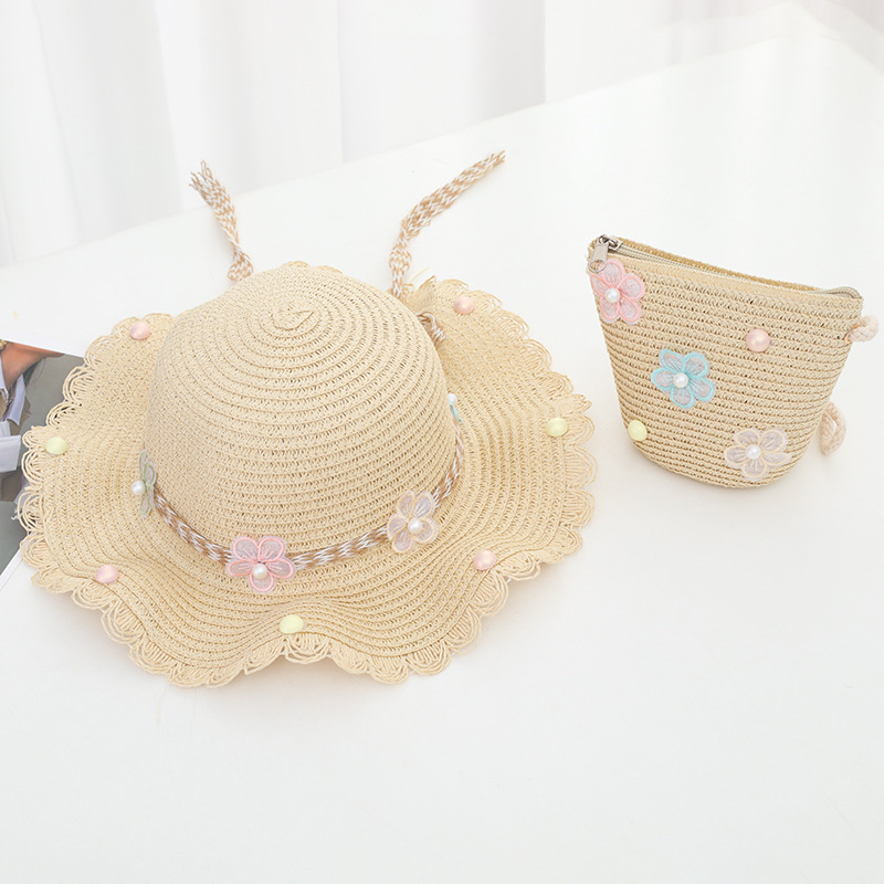 여름 어린이 자외선 차단제 모자 어린이와 여자를 세트 아기의 밀짚 모자 가방 차양을위한 큰 코너 태양 모자