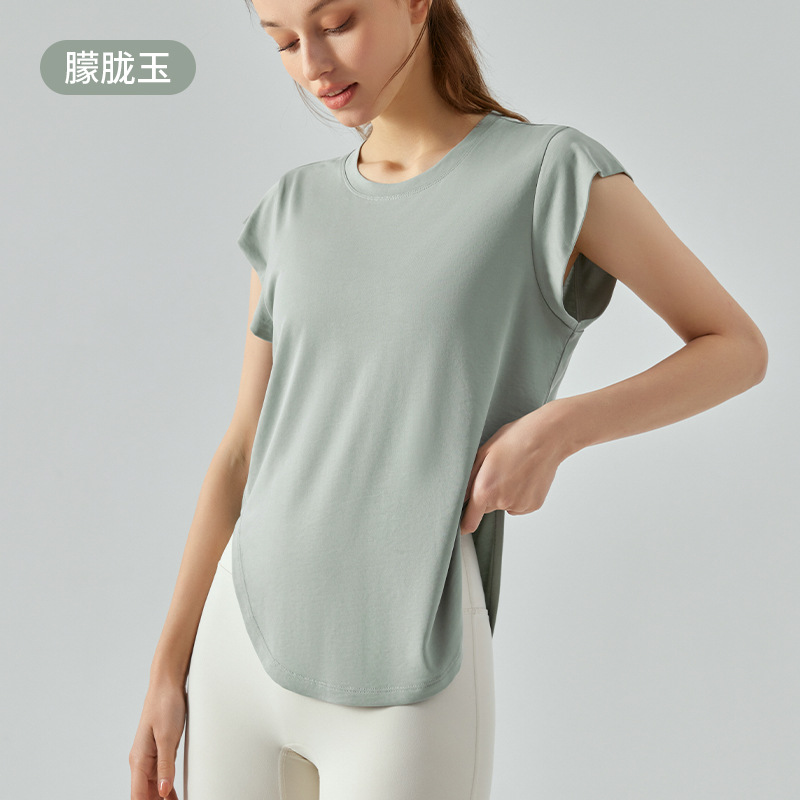 봄 모달 어깨 요가 반팔 느슨한 캐주얼 탑 야외 스포츠 조끼 요가 의류 티셔츠스토어 가기