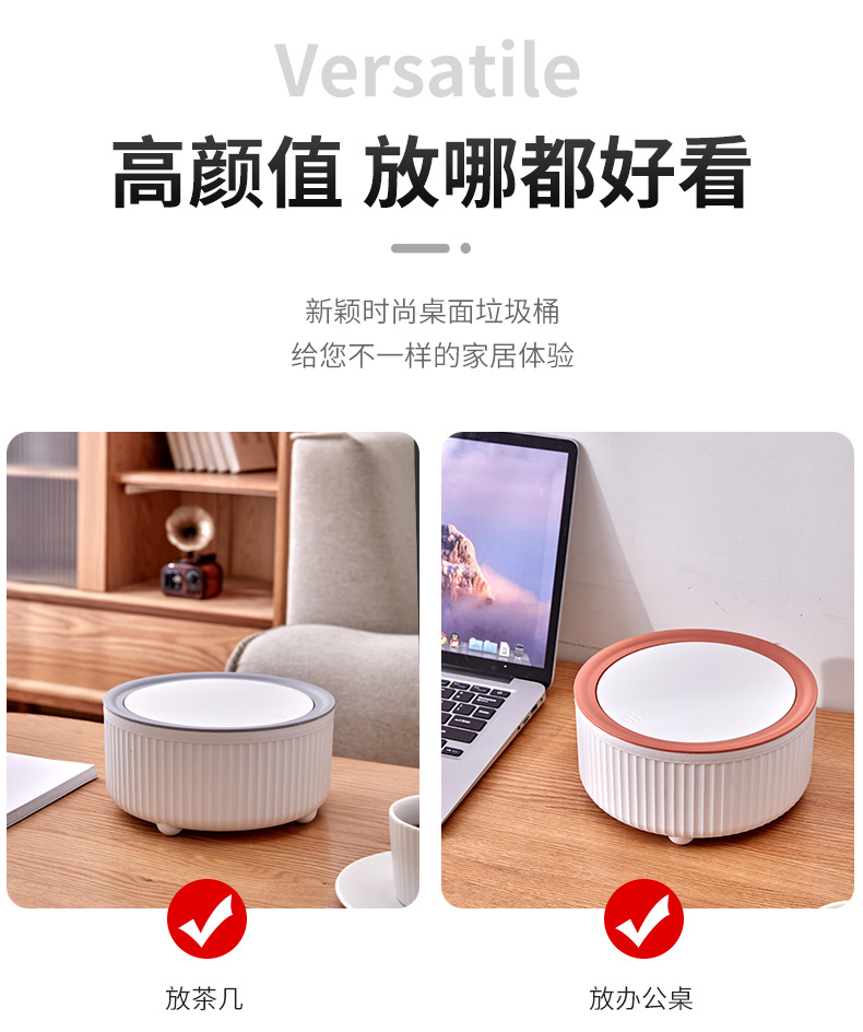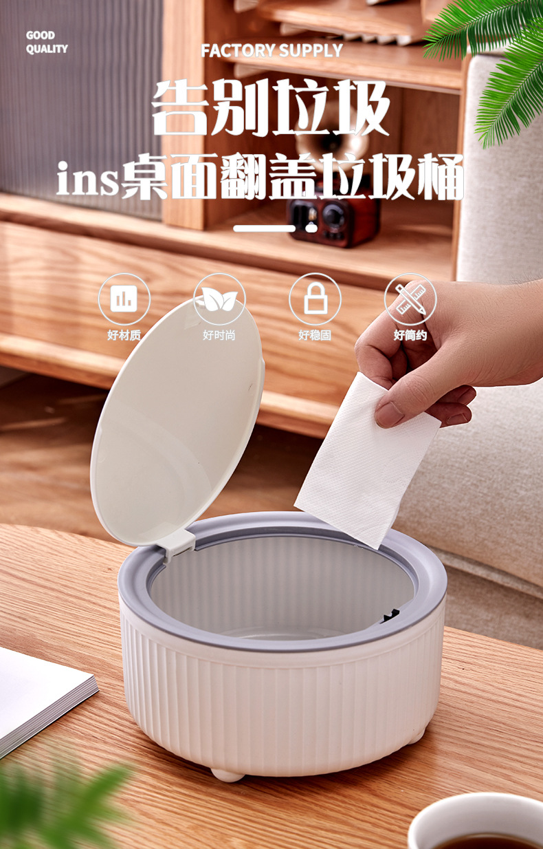 데스크탑 쓰레기통 푸시형 거실 빛 고급 자동차 장착 홈 데스크 다이닝 룸 스토리지 튜브 작은 쓰레기통