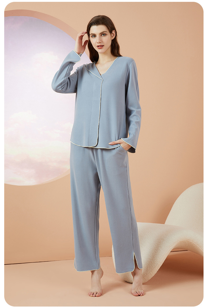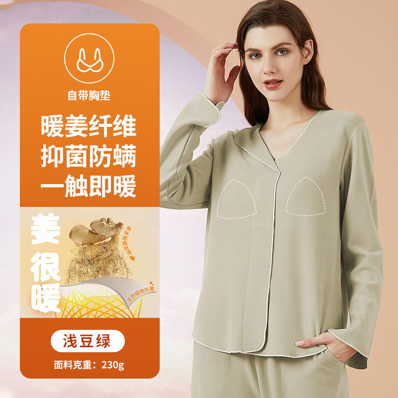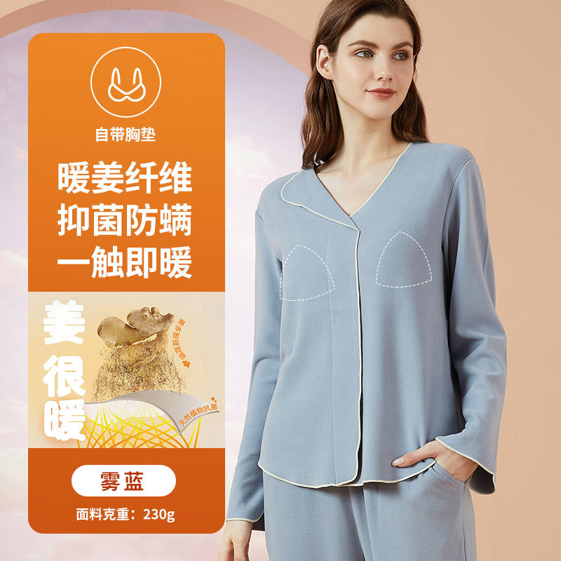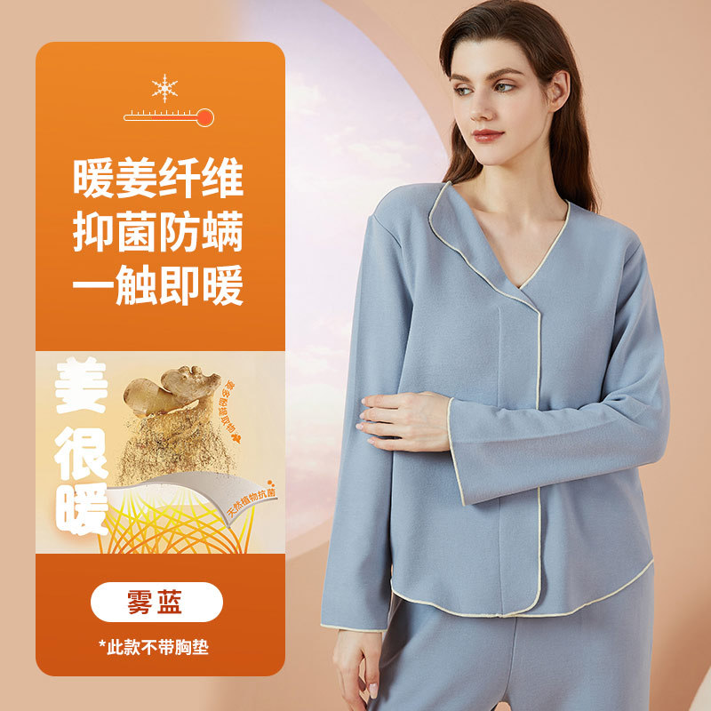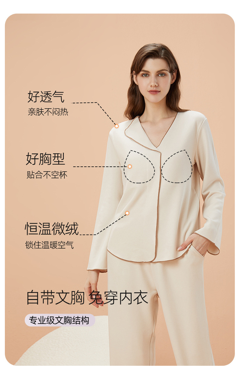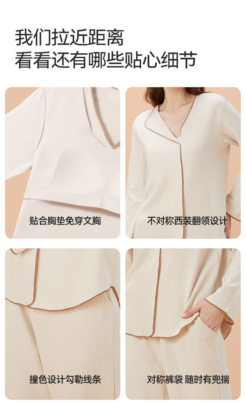 가슴 패드가 달린 Oweizi 파자마 여성의 봄과 가을 느슨한 긴소매 박테리아 풀오버 겉옷 세트스토어 가기