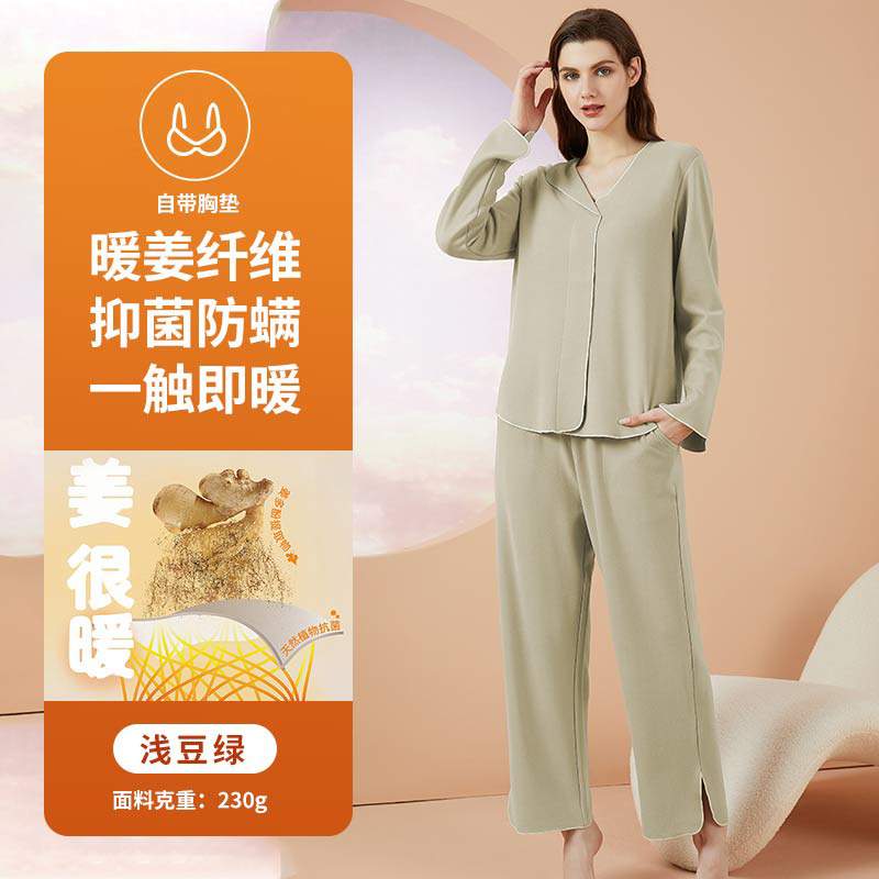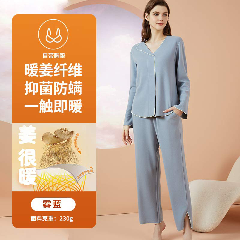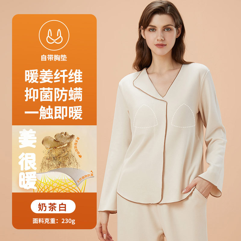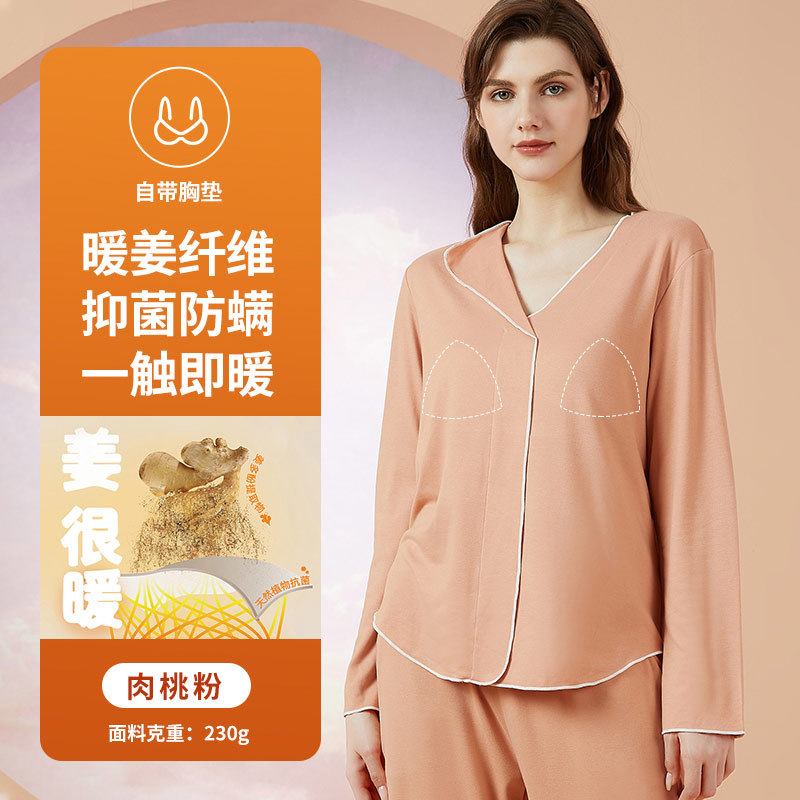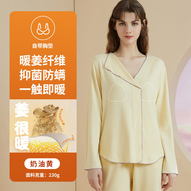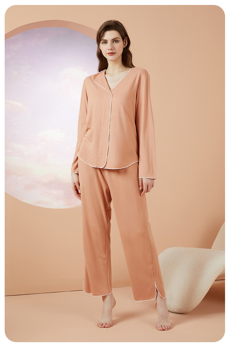 가슴 패드가 달린 Oweizi 파자마 여성의 봄과 가을 느슨한 긴소매 박테리아 풀오버 겉옷 세트스토어 가기