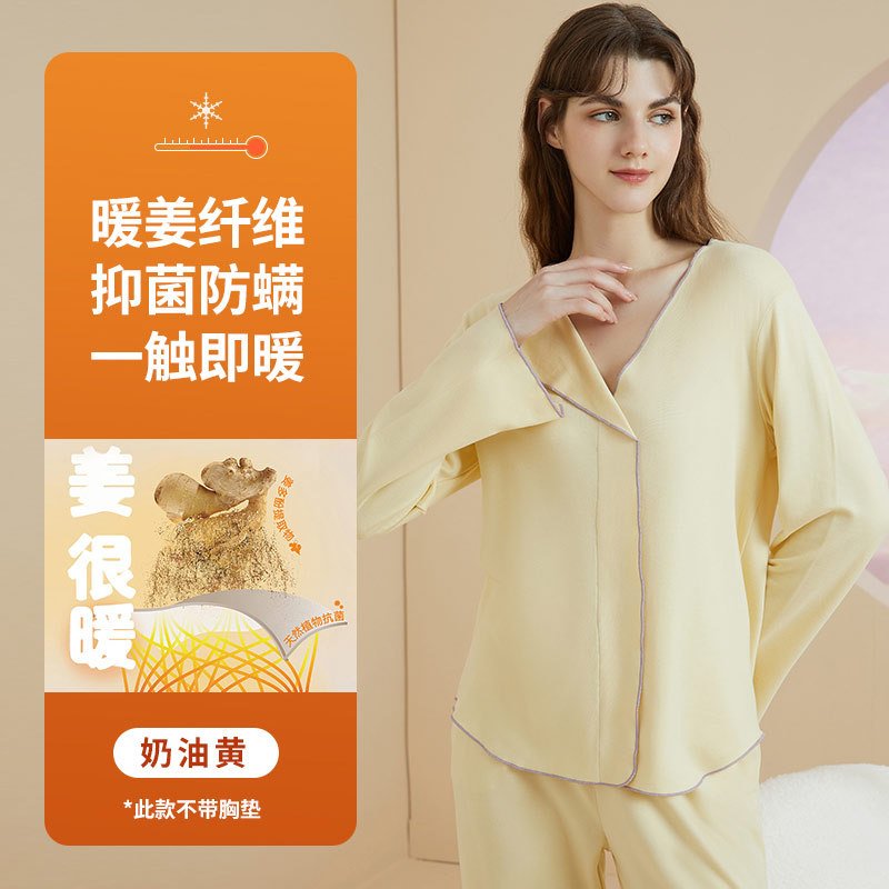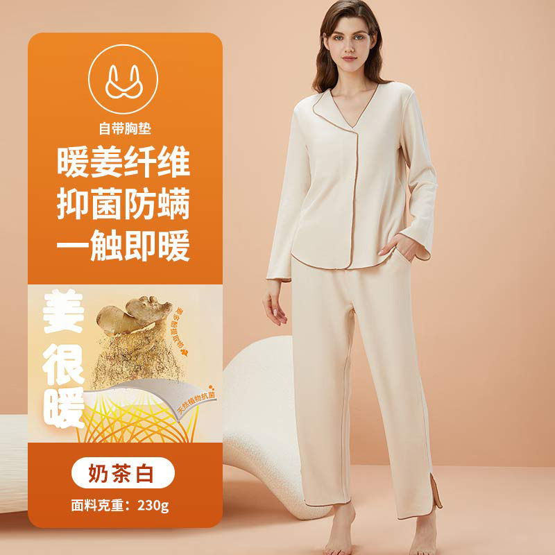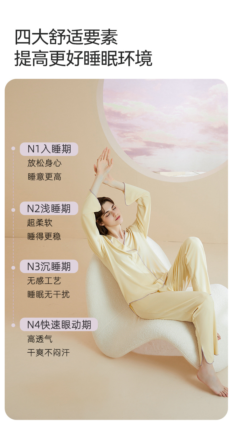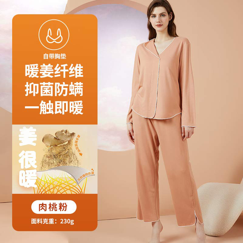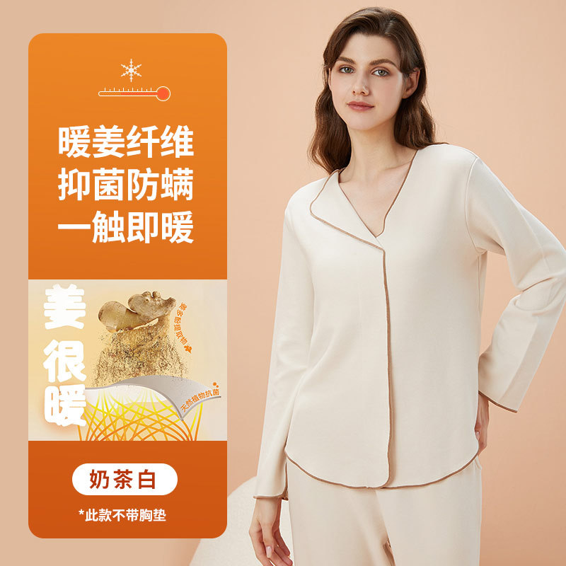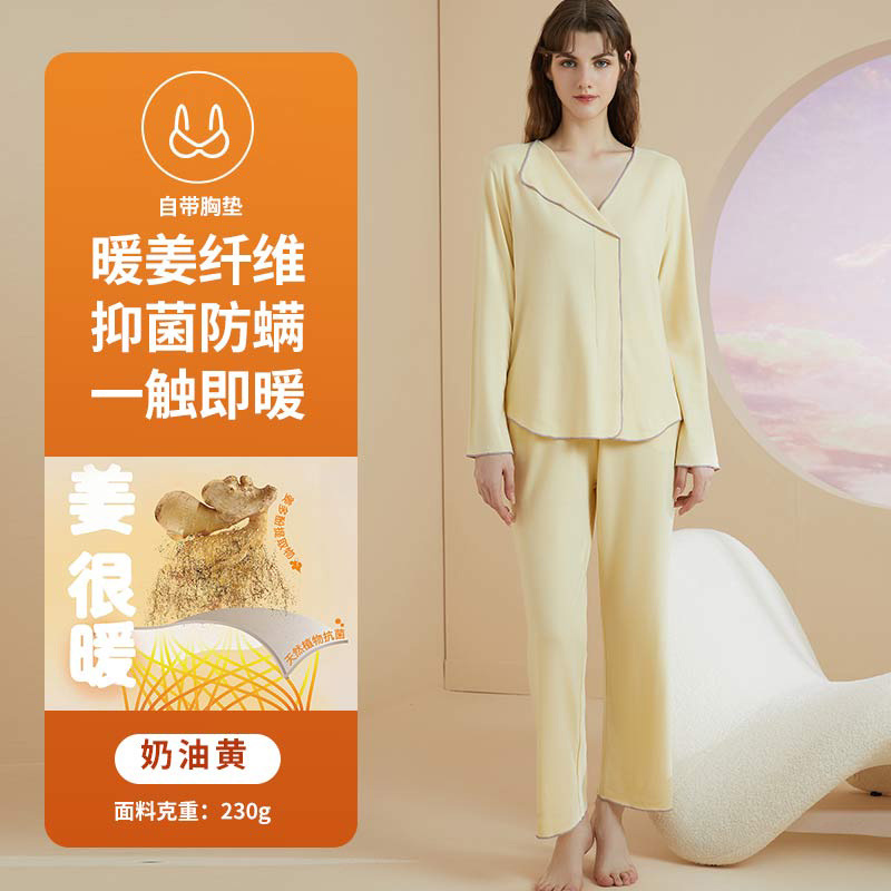 가슴 패드가 달린 Oweizi 파자마 여성의 봄과 가을 느슨한 긴소매 박테리아 풀오버 겉옷 세트스토어 가기