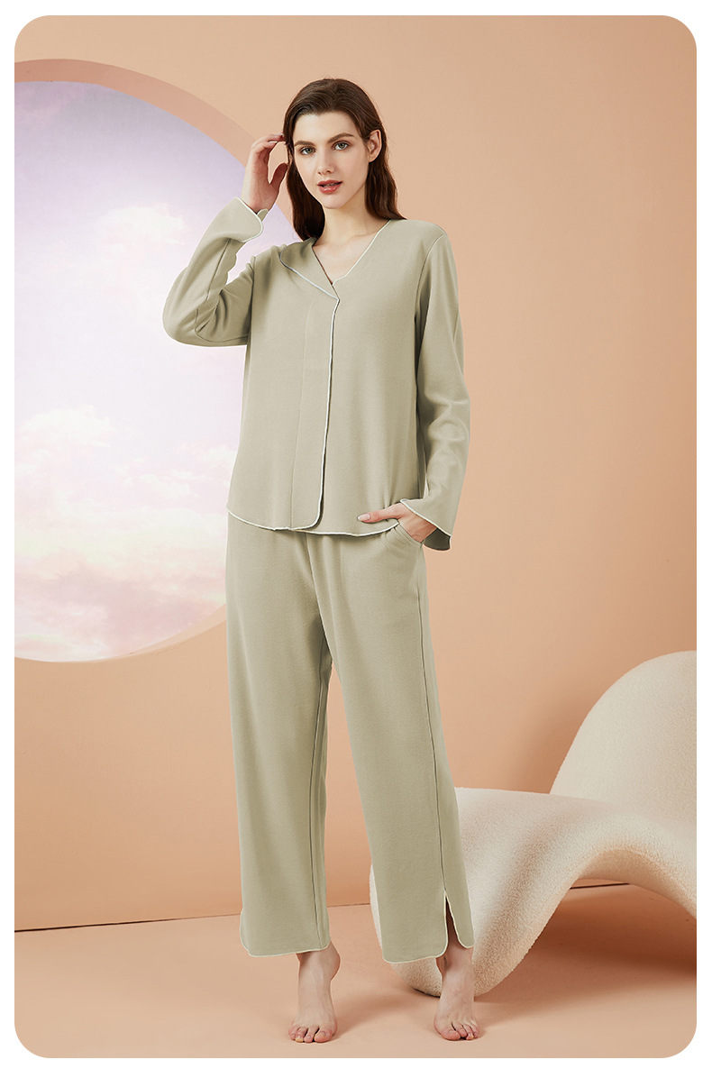 가슴 패드가 달린 Oweizi 파자마 여성의 봄과 가을 느슨한 긴소매 박테리아 풀오버 겉옷 세트