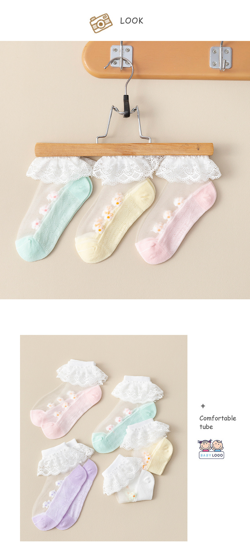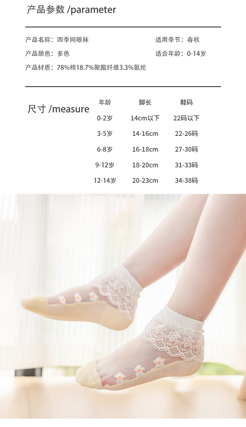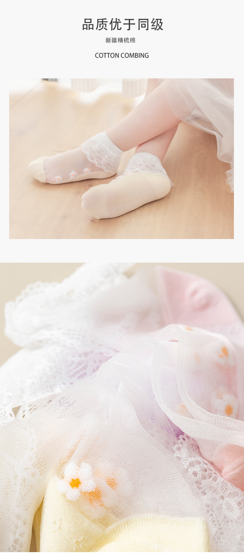 작은 토끼 소녀 양말 2023 새로운 봄과 여름 어린이 통기성 레이스 한국 스타일 아기 공주 크리스탈 양말스토어 가기