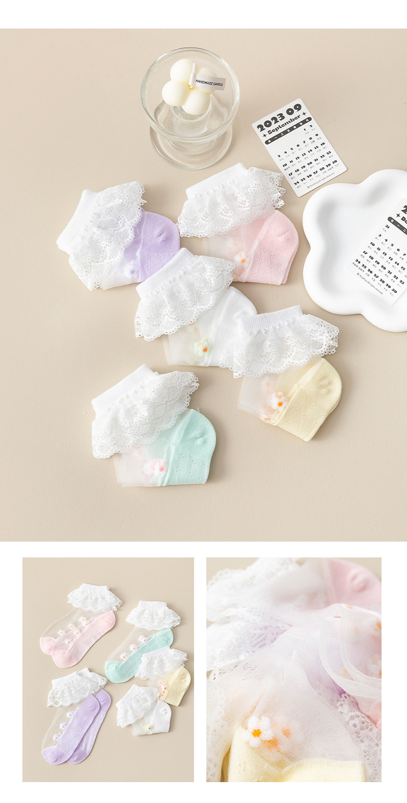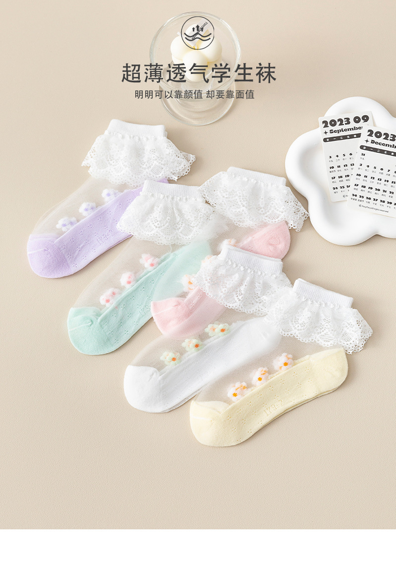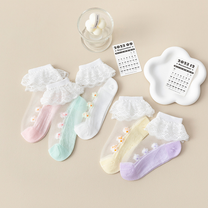 작은 토끼 소녀 양말 2023 새로운 봄과 여름 어린이 통기성 레이스 한국 스타일 아기 공주 크리스탈 양말스토어 가기