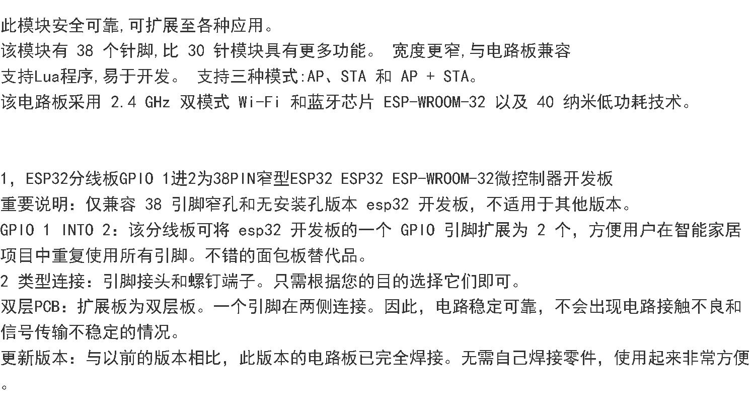ESP32 확장 보드 38Pin 개발 보드 무선 WiFi + 블루투스 2 in 1 듀얼 코어 CPU 저전력 소비스토어 가기