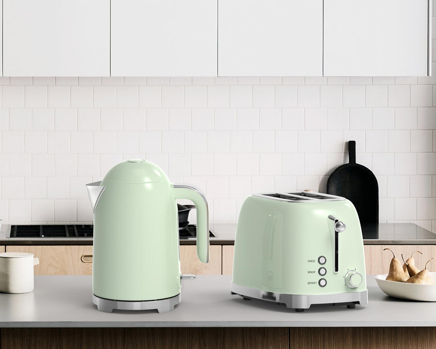 [폭발성 세트] 가정용 복고풍 자동 토스터 1.7L 온도계 스테인리스 전기 주전자 세트스토어 가기