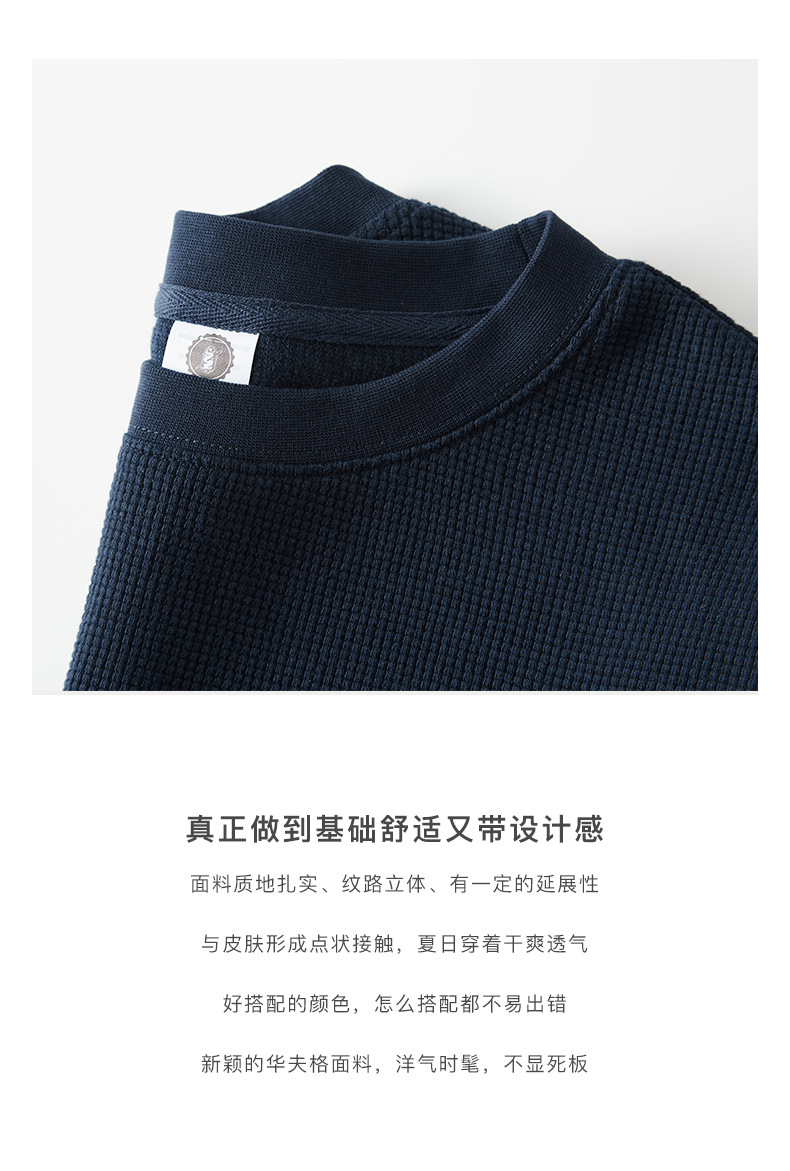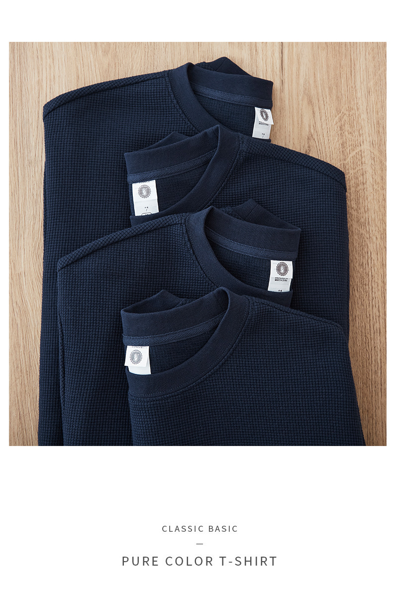 280g 와플 반팔 티셔츠 남자의 여름 캐주얼 느슨한 미국 복고풍 무거운 니트 어깨 반팔 셔츠