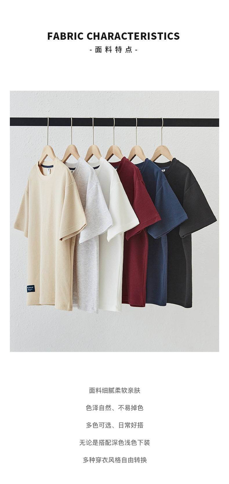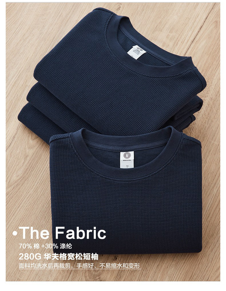 280g 와플 반팔 티셔츠 남자의 여름 캐주얼 느슨한 미국 복고풍 무거운 니트 어깨 반팔 셔츠스토어 가기