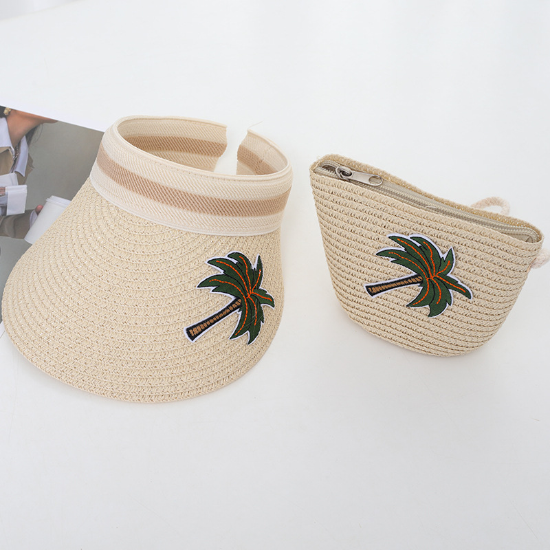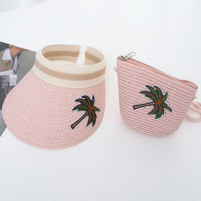 어린이 자외선 차단제 모자 아기 모자 여름 태양 모자 소년의 빈 모자 소녀의 태양 모자 밀짚 모자 가방 세트