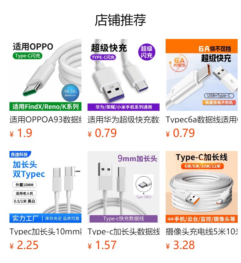 Typec 확장형 9mm 데이터 케이블은 노인용 휴대폰 충전 케이블의 Huawei 데이터 케이블 유형-c 확장형에 적합합니다.스토어 가기