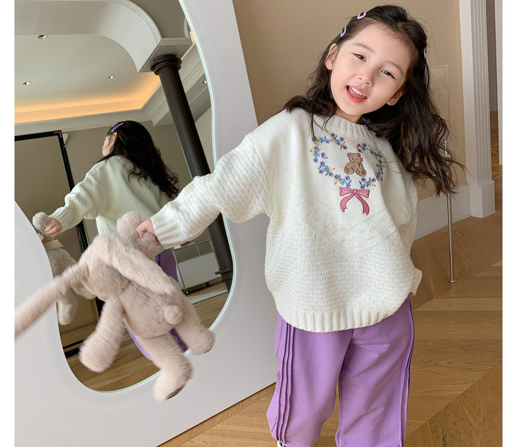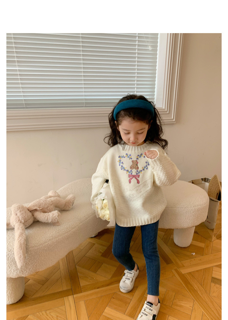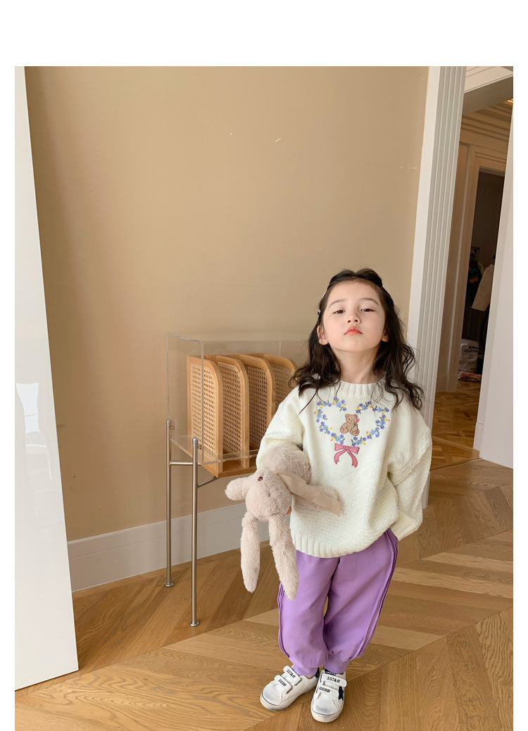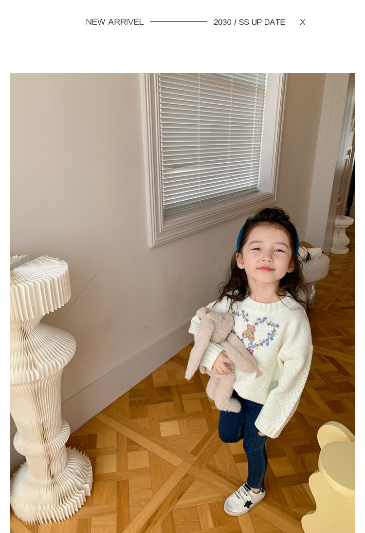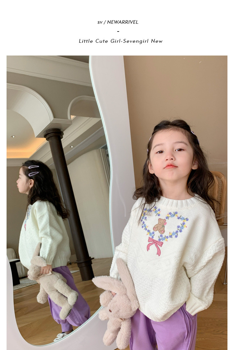 No.7 어린이 창고 여아 한국 달콤한 니트 스웨터 가을 새로운 패션 귀여운 부드러운 왁스 크루넥 탑 트렌디스토어 가기