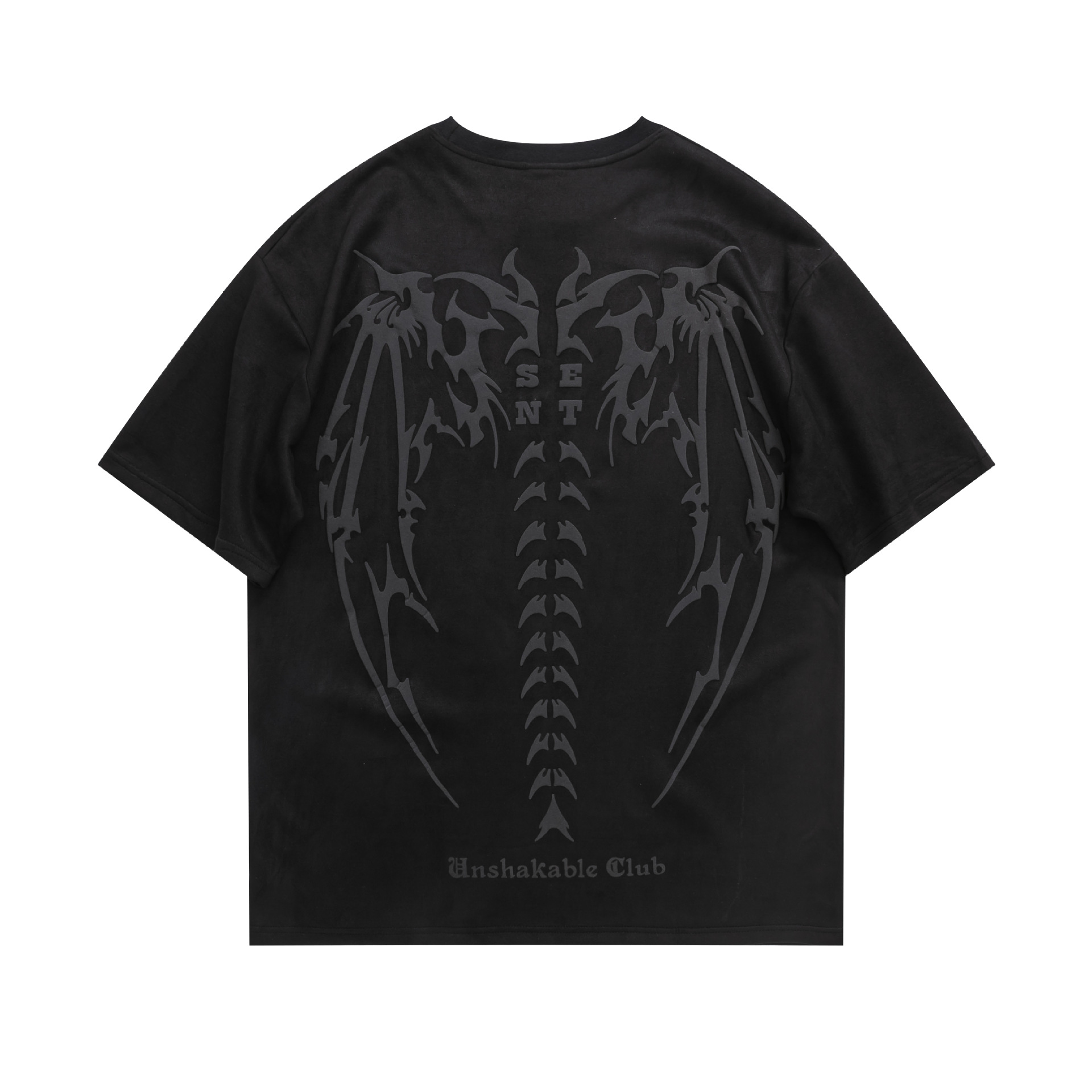 2024 여름 미국 복고풍 해골 프린트 티셔츠 남성 여름 느슨한 반팔 스웨이드 트렌디 반팔스토어 가기