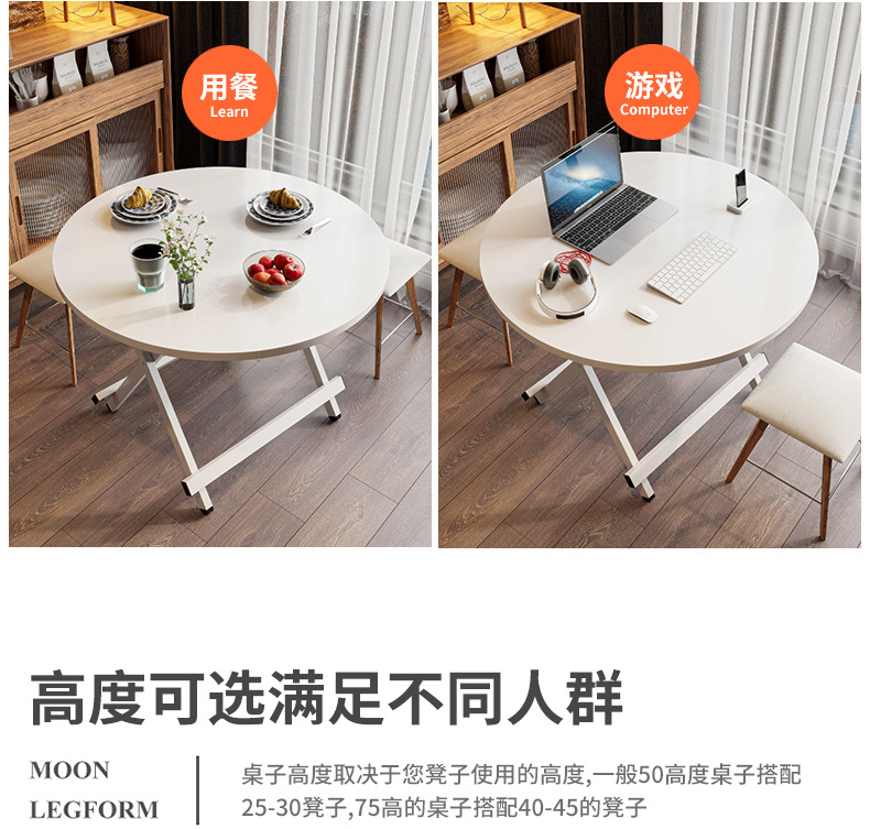 접이식 테이블 원형 테이블 간단한 식탁 렌탈 하우스 가정용 캐주얼 다이닝 야외 휴대용 여행 작은 테이블