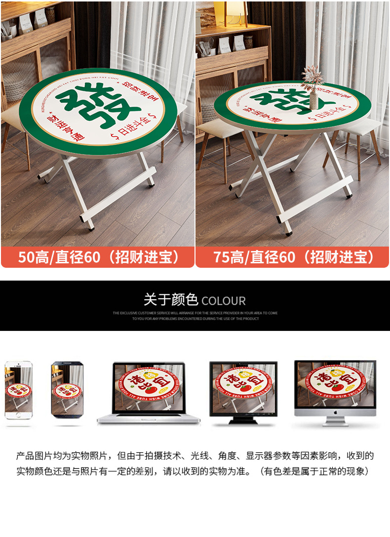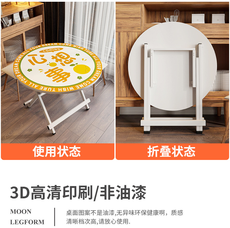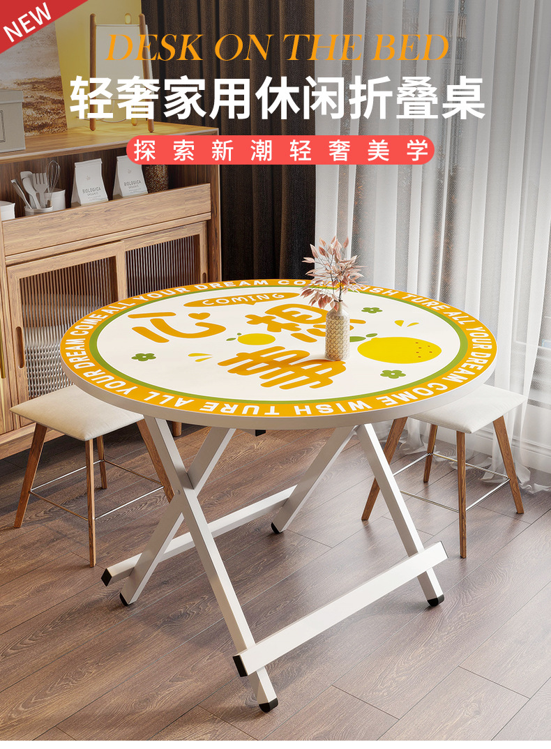 접이식 테이블 원형 테이블 간단한 식탁 렌탈 하우스 가정용 캐주얼 다이닝 야외 휴대용 여행 작은 테이블스토어 가기