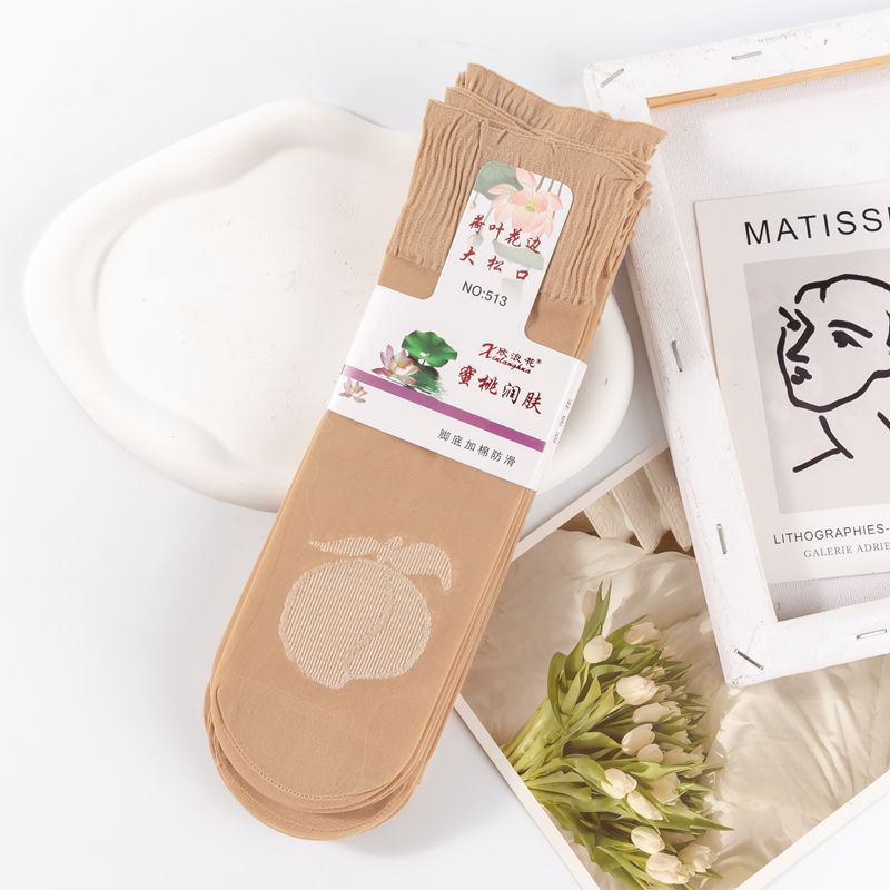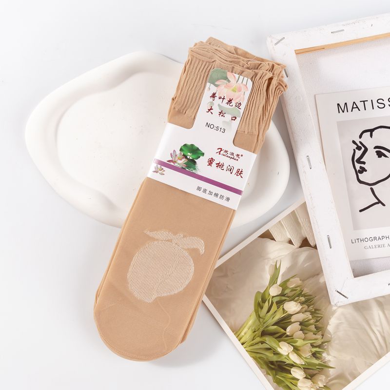 실크 스타킹 도매 봄과 여름 얇은 연꽃 잎 레이스 느슨한 목화 바닥 미끄럼 방지 복숭아 스타킹과 발목 교살