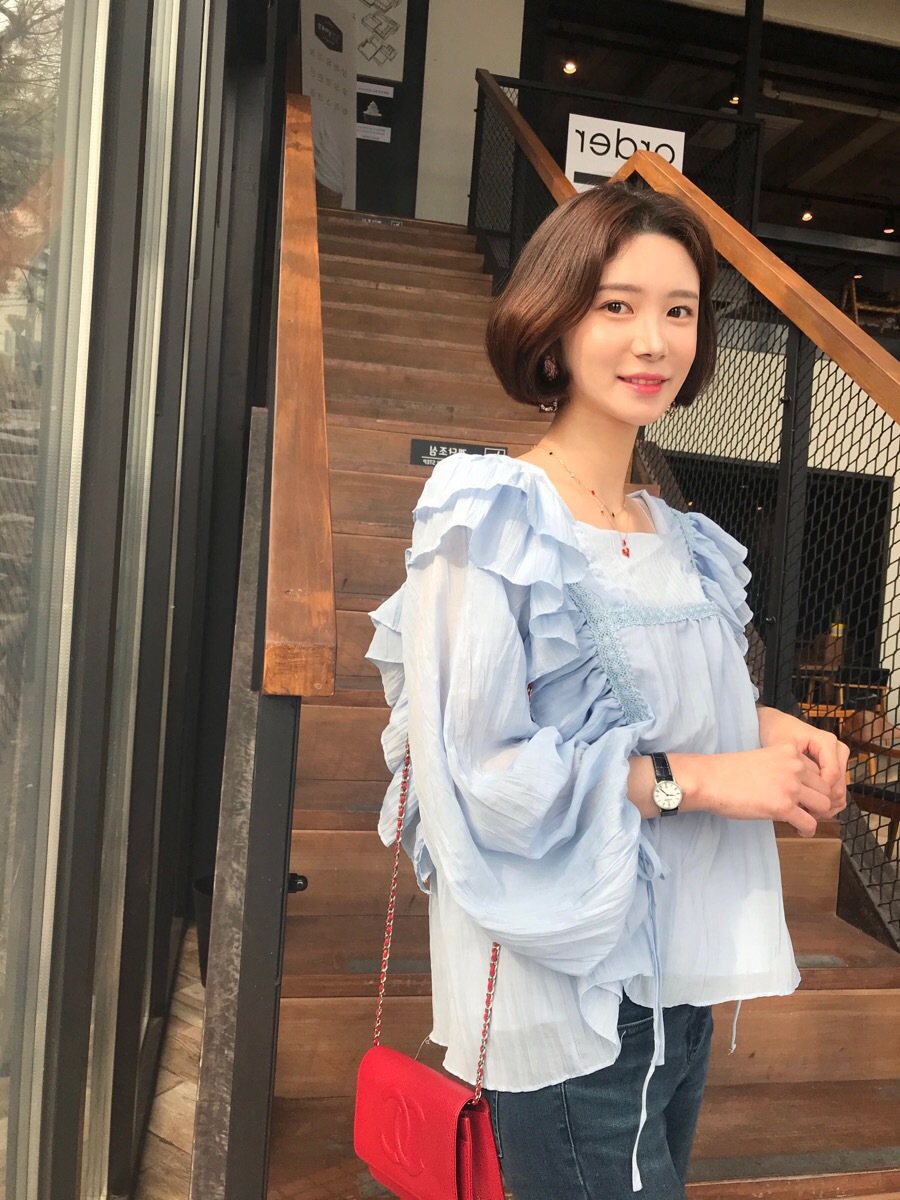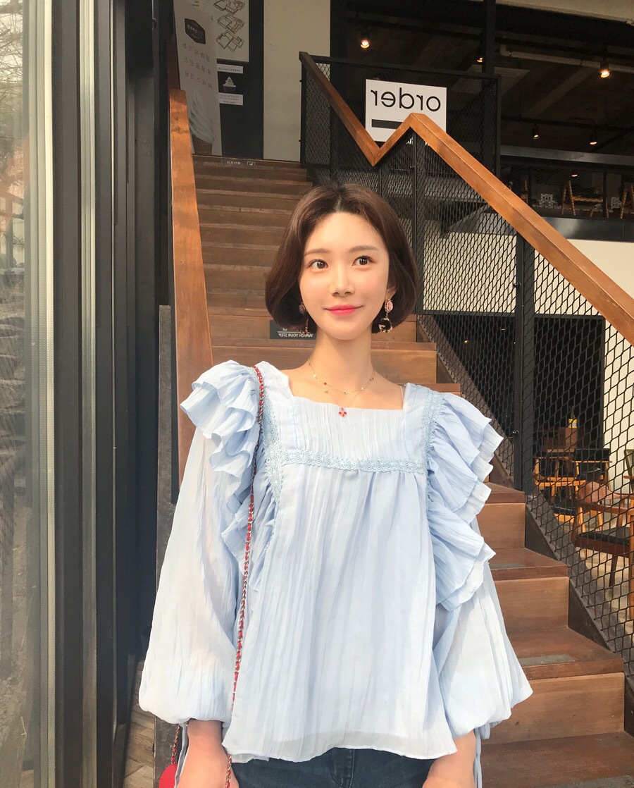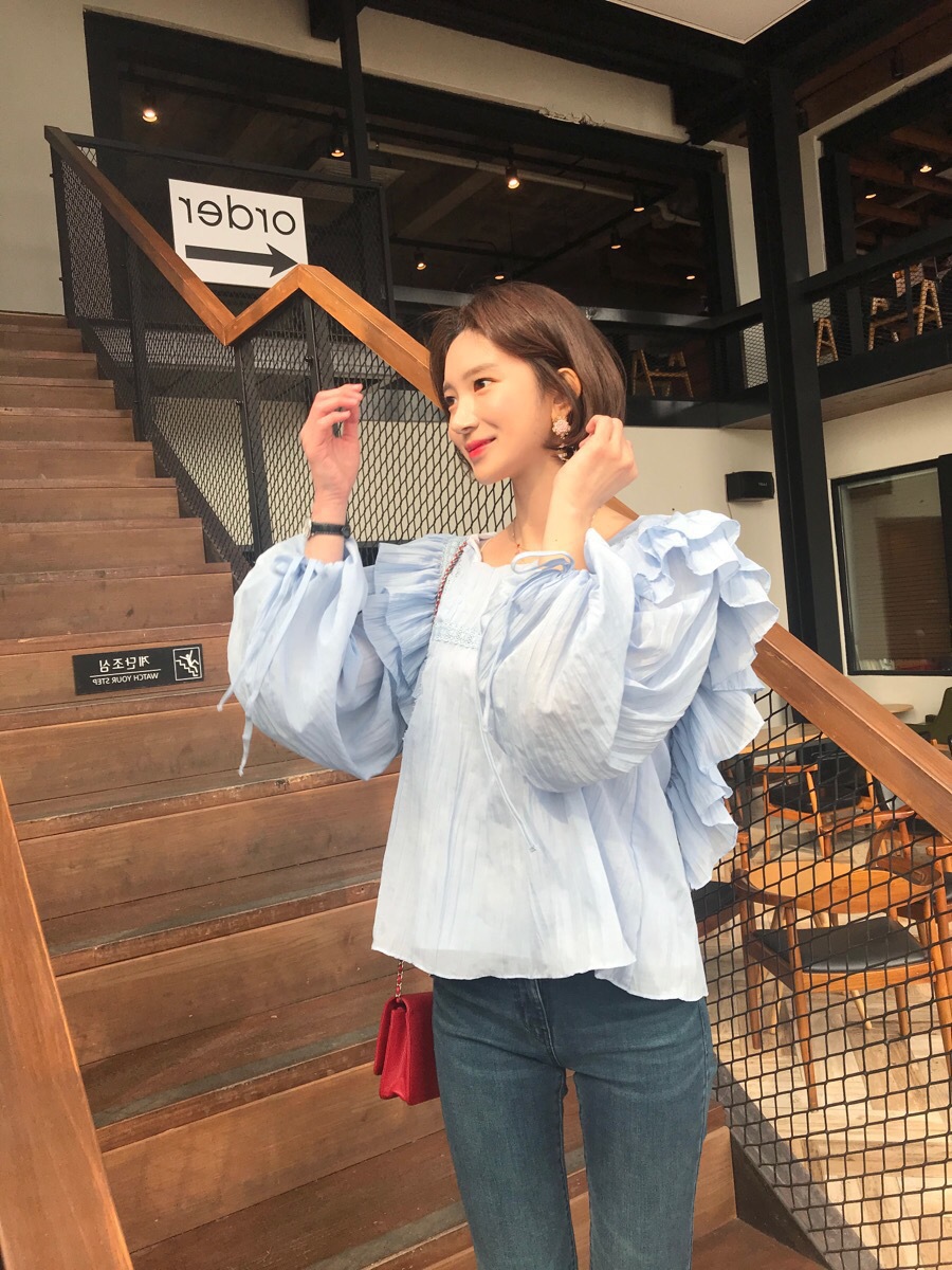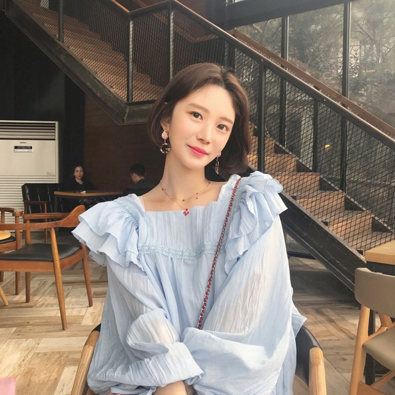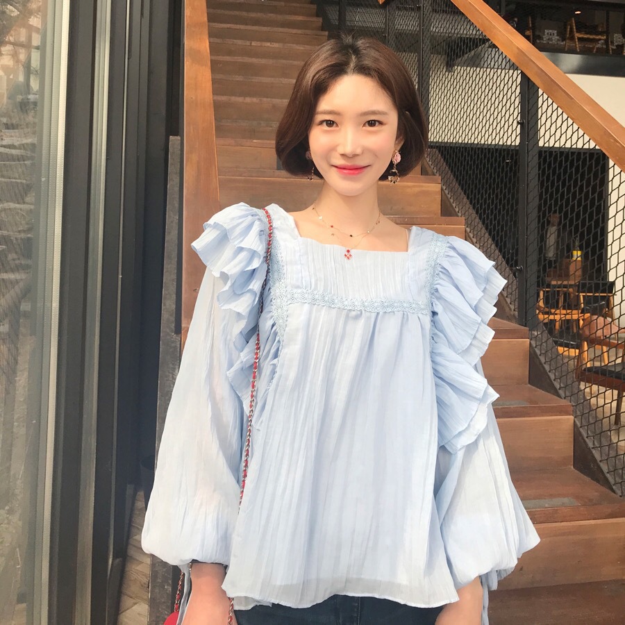 러플 스위트 쉬폰 셔츠 여성용 자오 루시 같은 스타일 긴 소매 세련된 느슨한 한국 스타일 슈퍼 요정 인형 셔츠 여성 탑스토어 가기