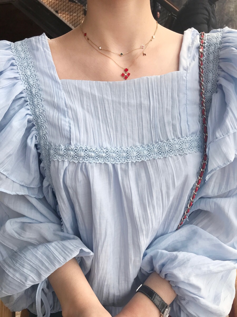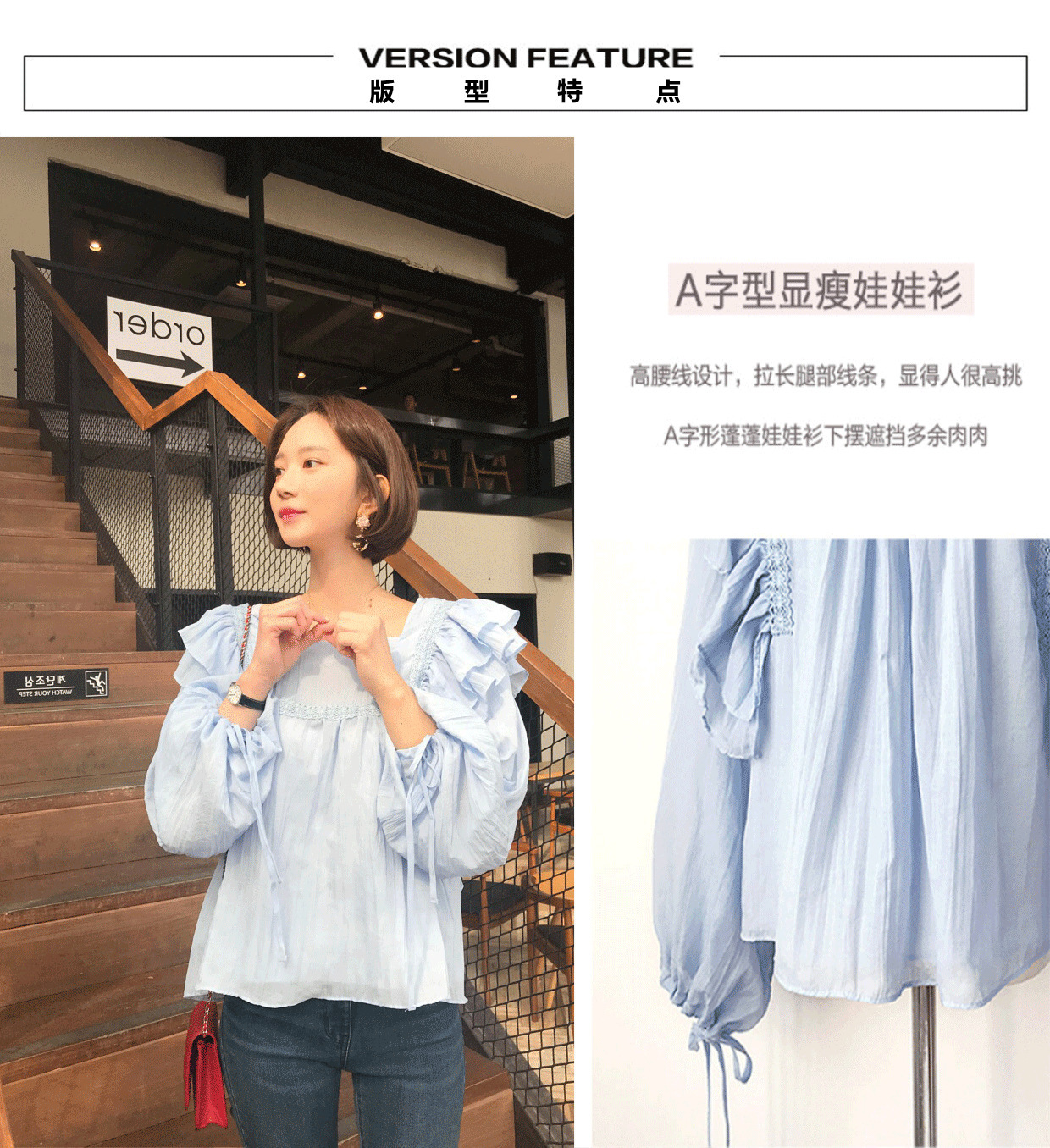 러플 스위트 쉬폰 셔츠 여성용 자오 루시 같은 스타일 긴 소매 세련된 느슨한 한국 스타일 슈퍼 요정 인형 셔츠 여성 탑