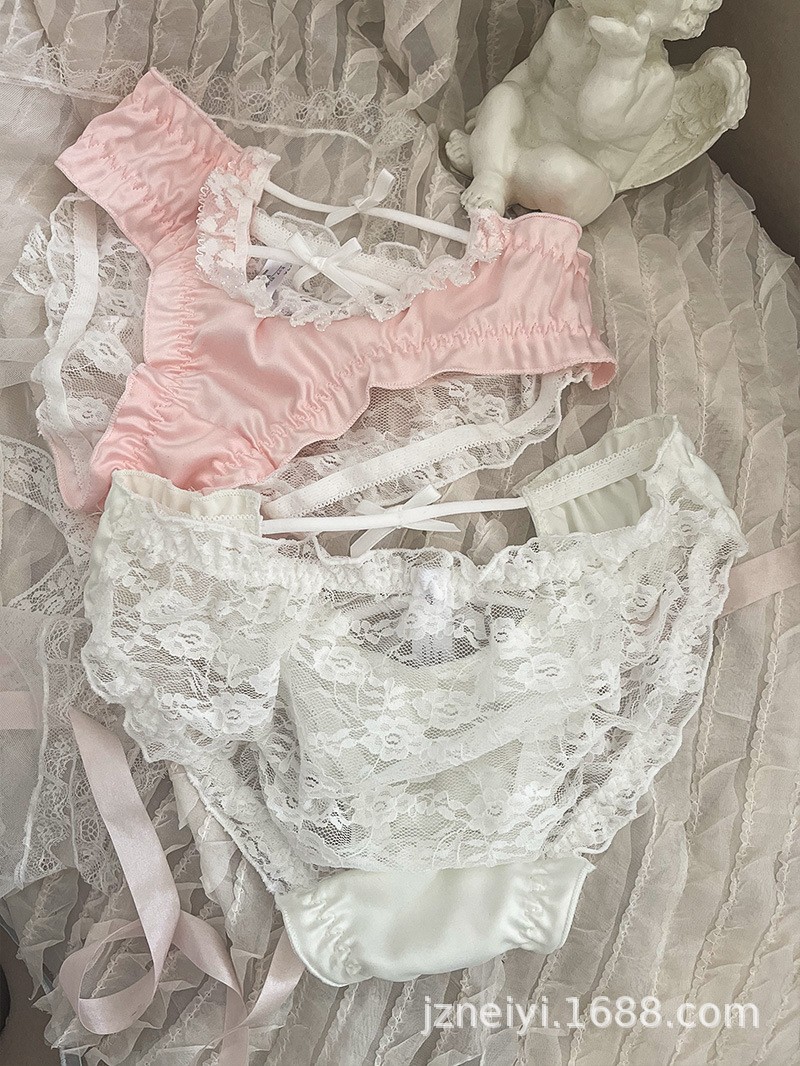 달콤한 신선한 소녀 속옷 레이스 투명 활 통통 낮은 허리 통기성 학생 귀여운 팬티스토어 가기