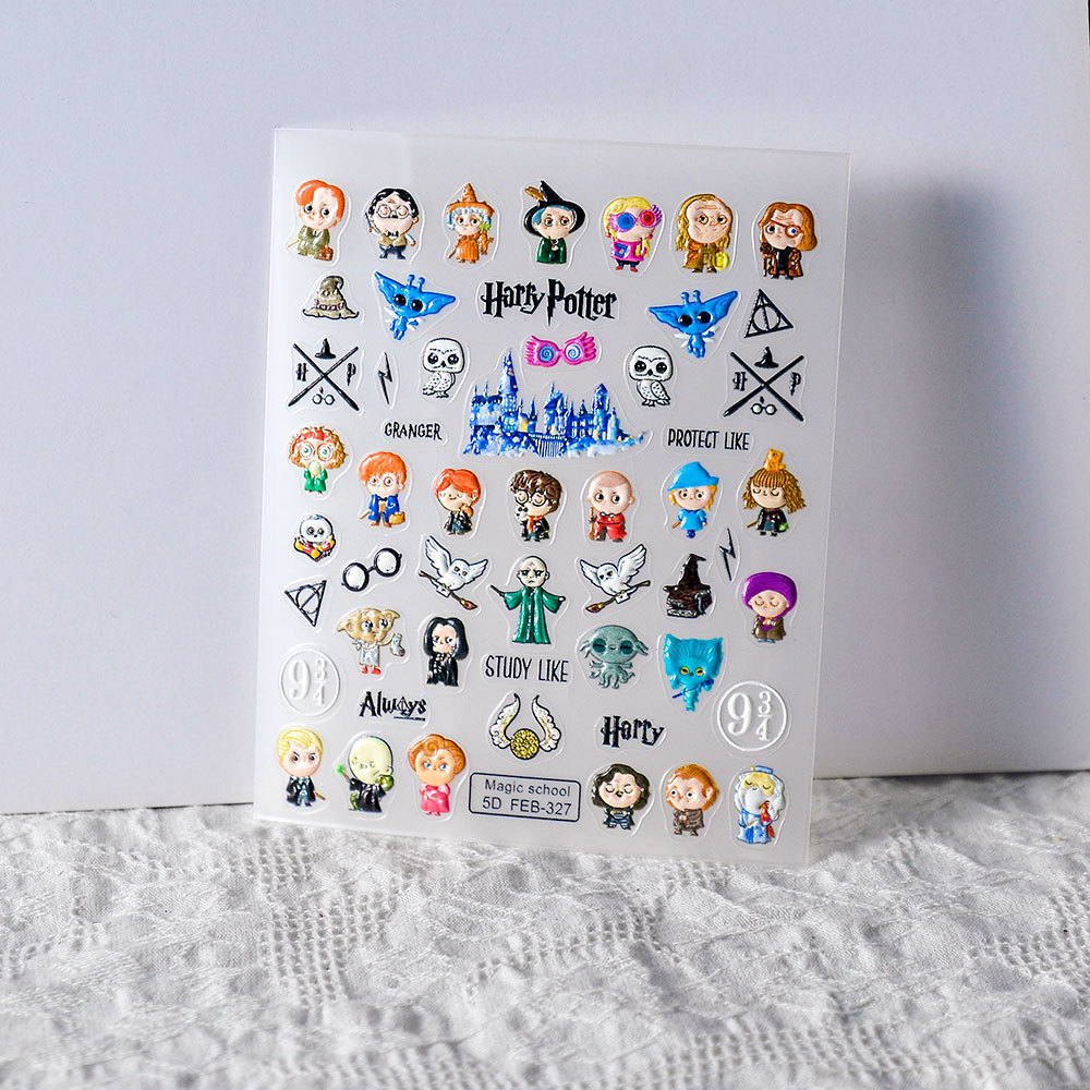 FEB 유럽과 미국 양각 네일 아트 스티커 만화 레트로 5D 엘프 매직 포터 어린이 네일 스티커 장식 도매스토어 가기