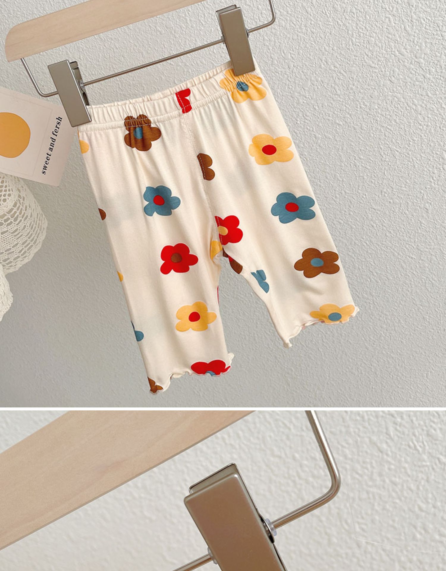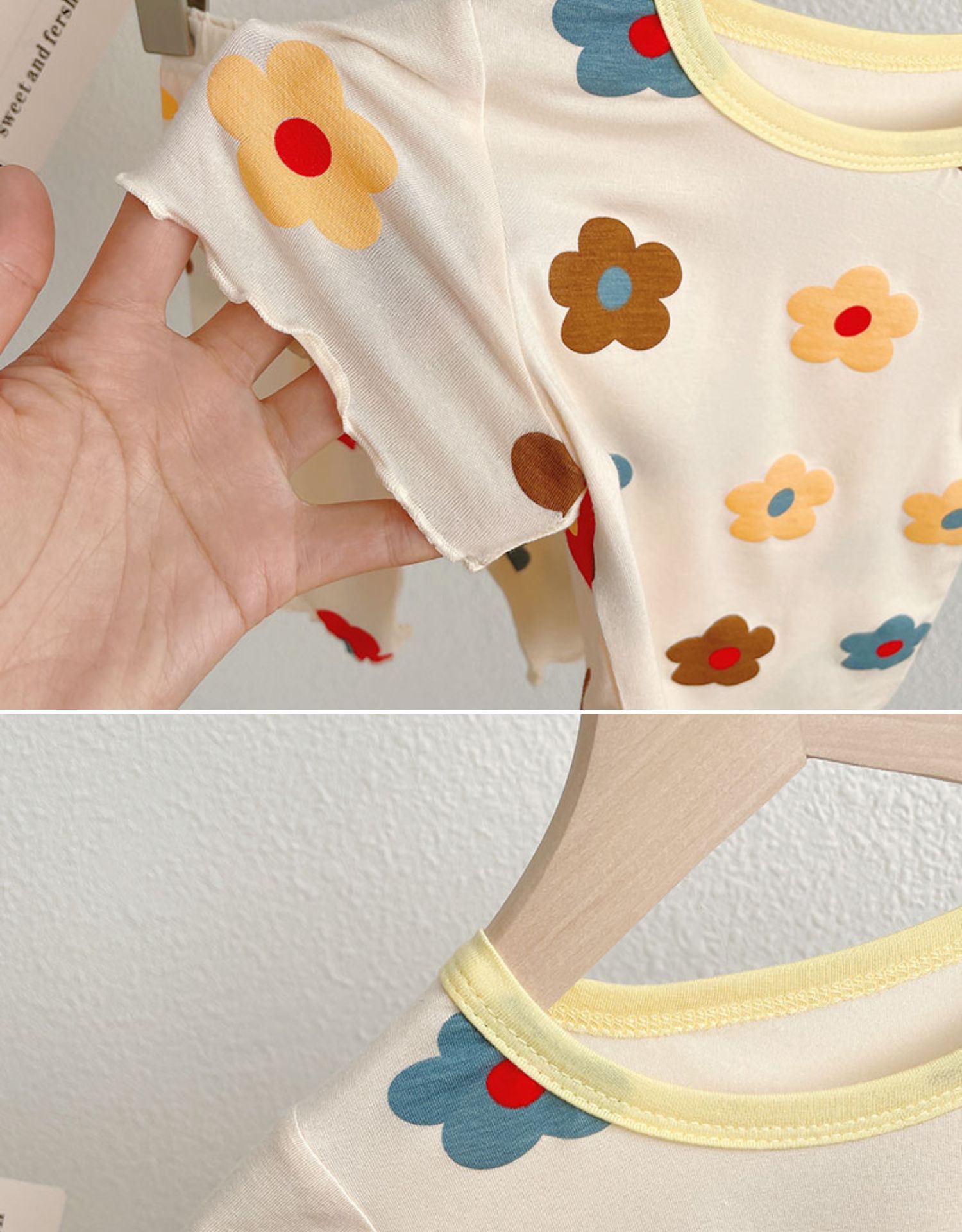 2024 여아 아이스 실크 시원한 여름 신상품 중소형 아동 캐주얼 꽃무늬 세트 잠옷 홈웨어 투피스 세트 트렌디