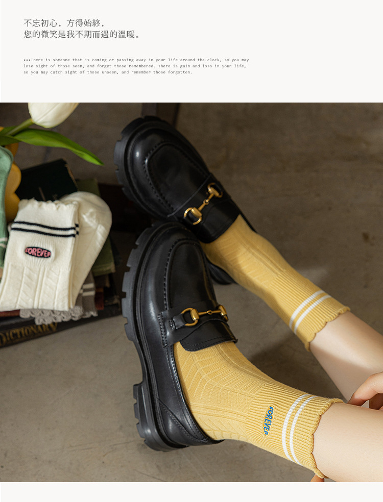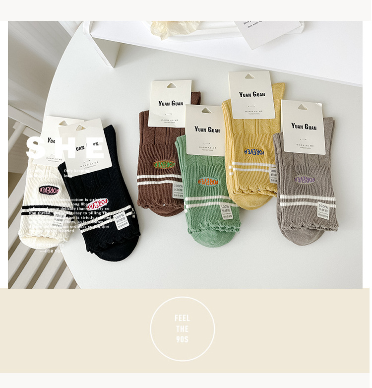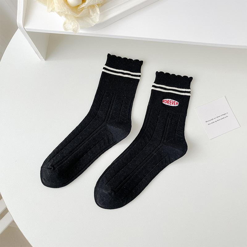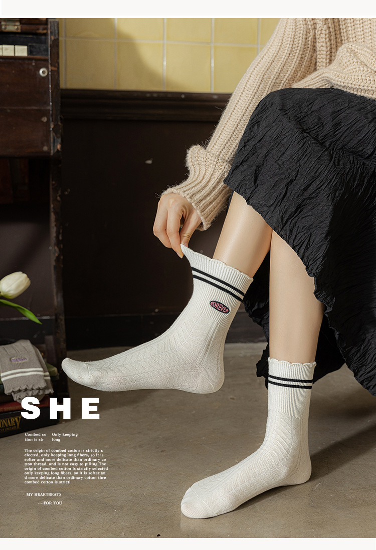 양말 여자의 가을 일본 더블 바늘 미드 튜브 양말 긴 벨벳 면 긴 튜브 자수 레이스 스트라이프 Zhuji 여성 양말 도매스토어 가기