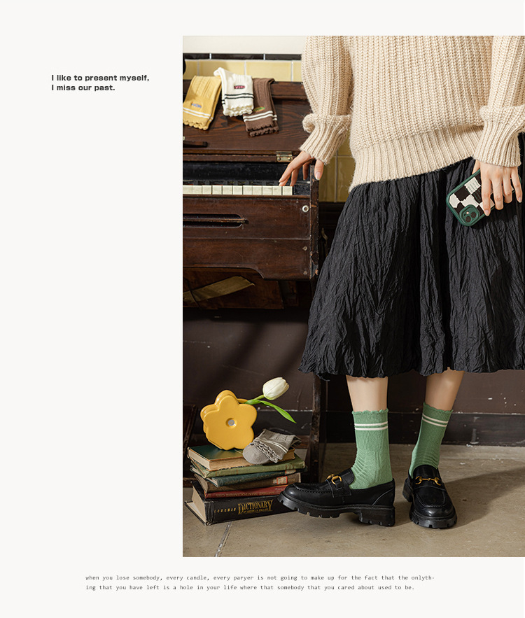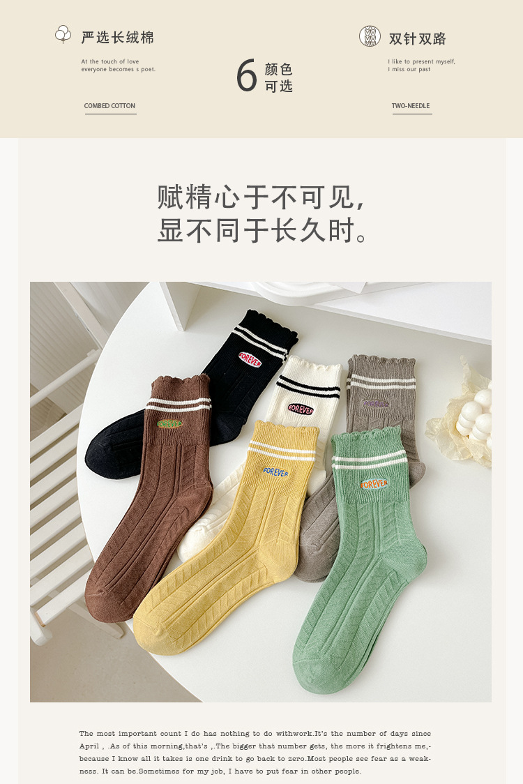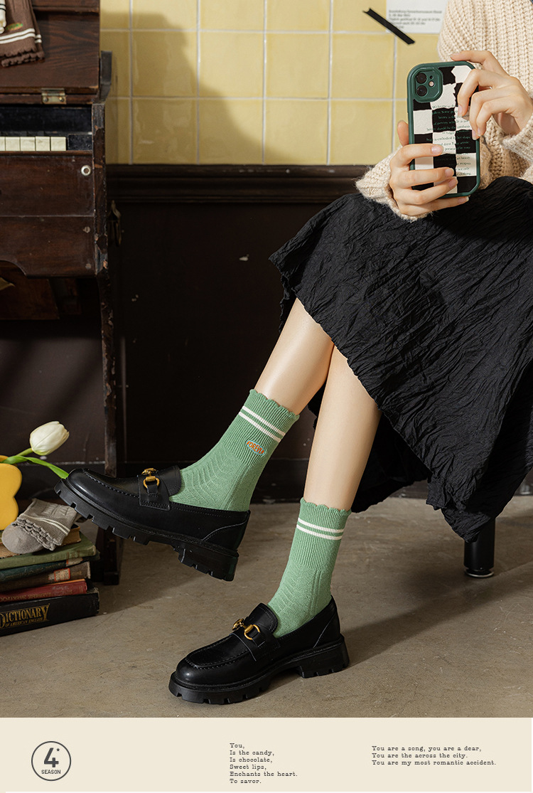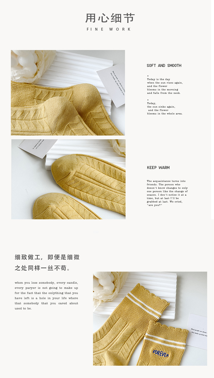 양말 여자의 가을 일본 더블 바늘 미드 튜브 양말 긴 벨벳 면 긴 튜브 자수 레이스 스트라이프 Zhuji 여성 양말 도매