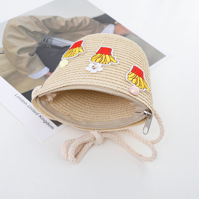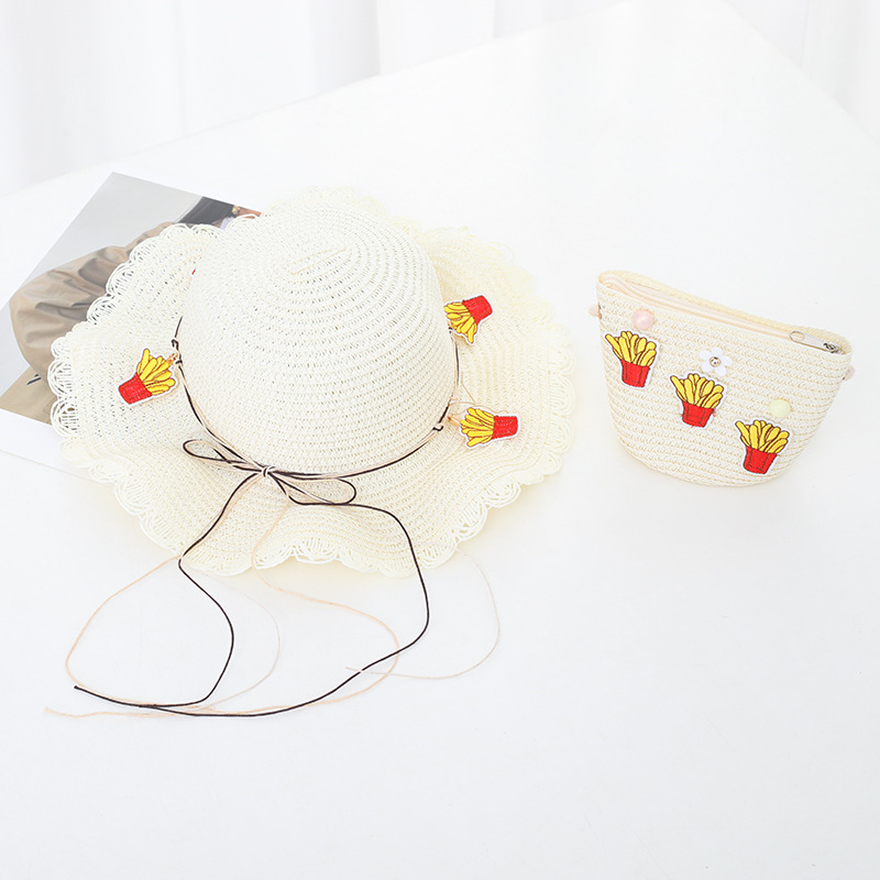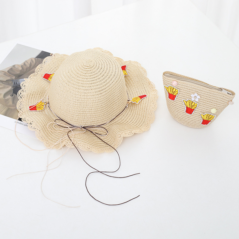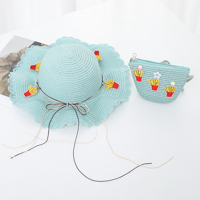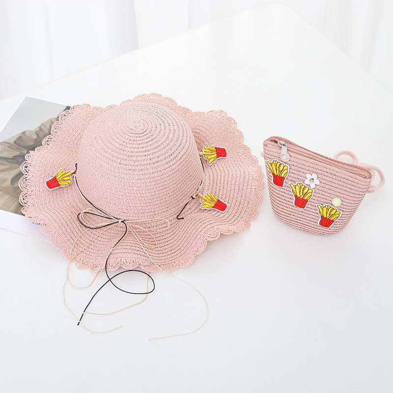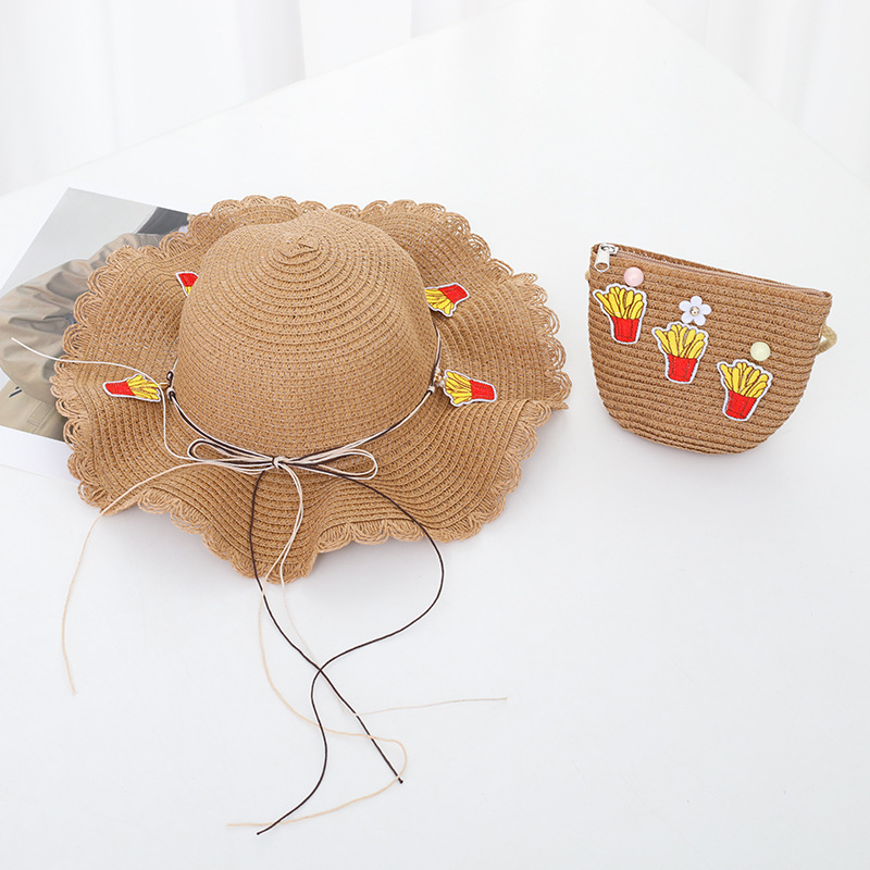새로운 어린이 활 밀짚 모자 자외선 차단제 모자 가방 크로스 바디 동전 지갑 해변 부모-자식 모자 귀여운 공주