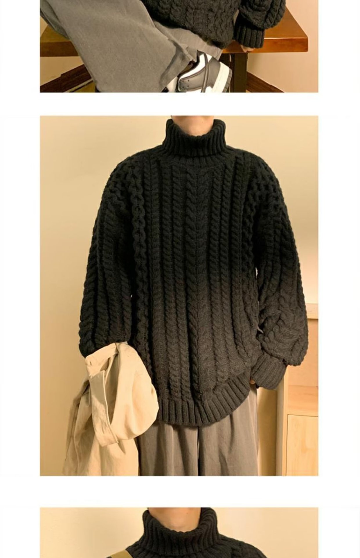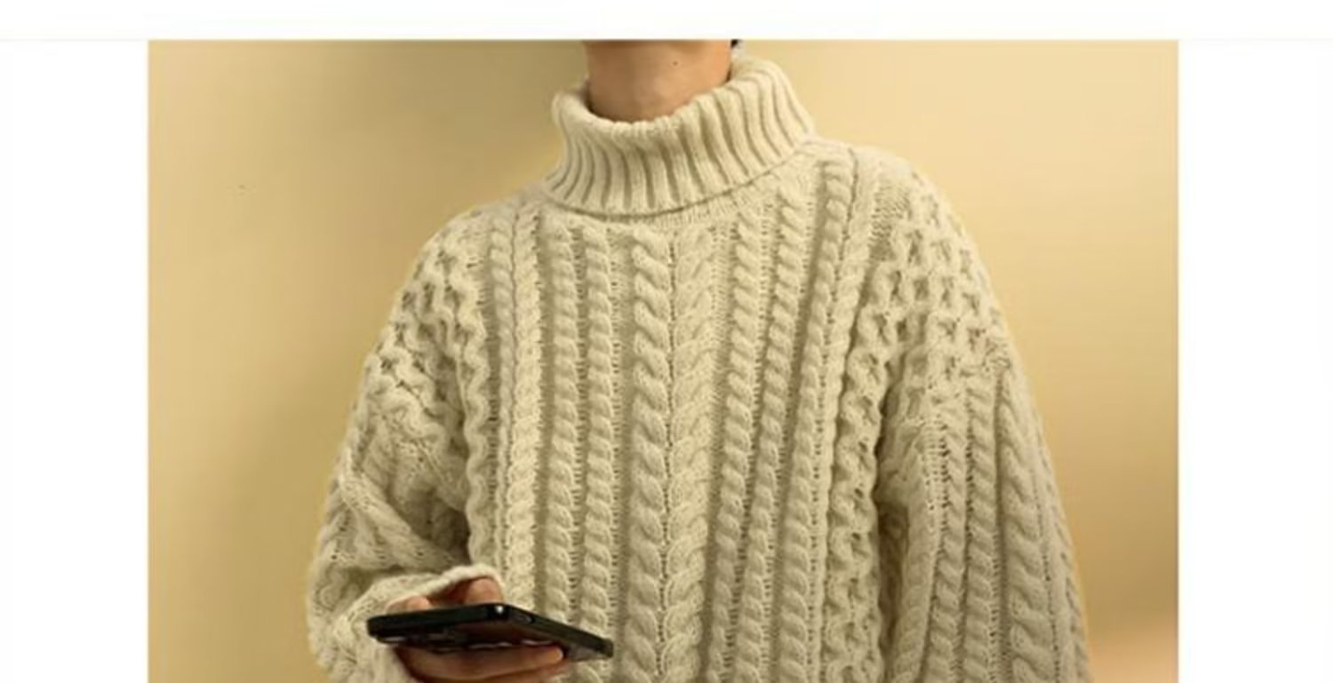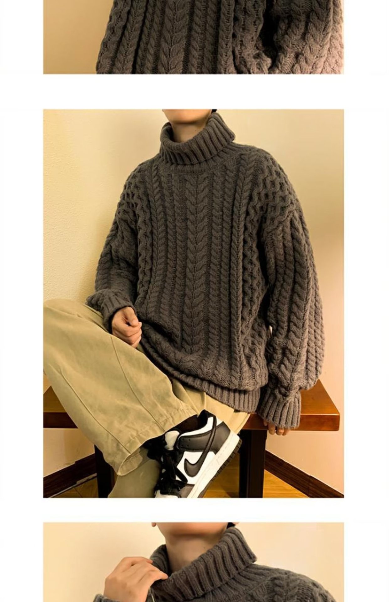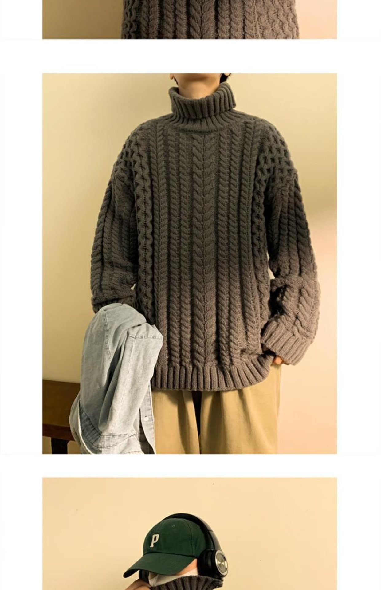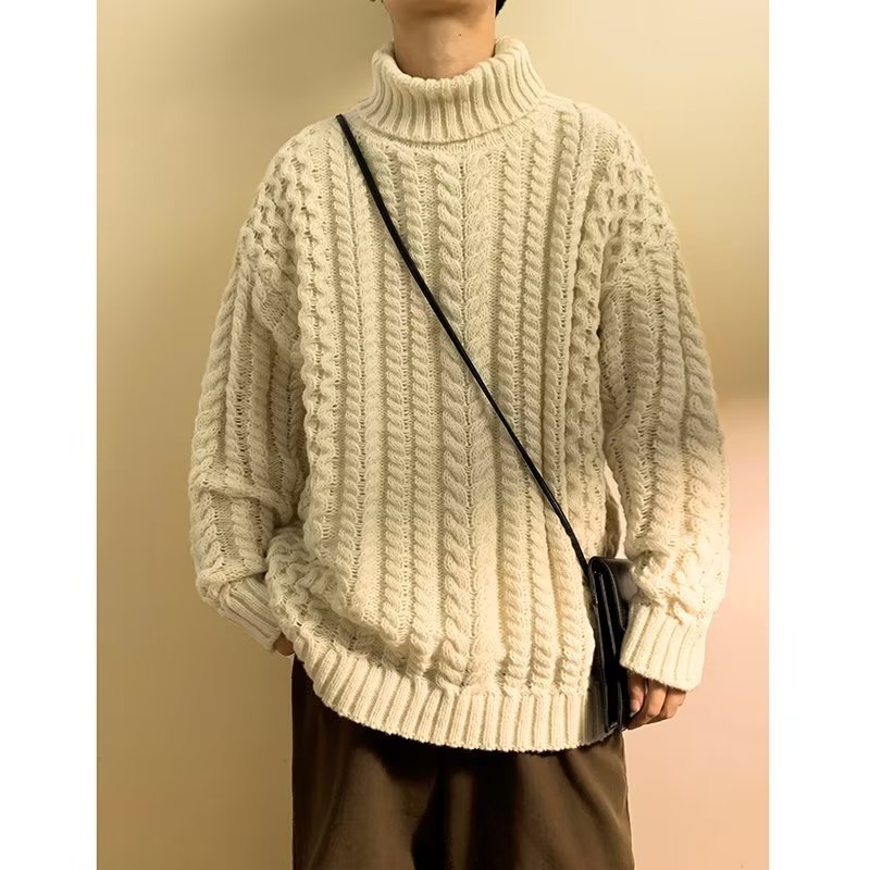 두꺼운 라인 트위스트 남성용 스웨터 터틀넥 가을과 겨울 두꺼운 미국 헤비 코트 게으른 스타일 디자인 감각 니트웨어스토어 가기