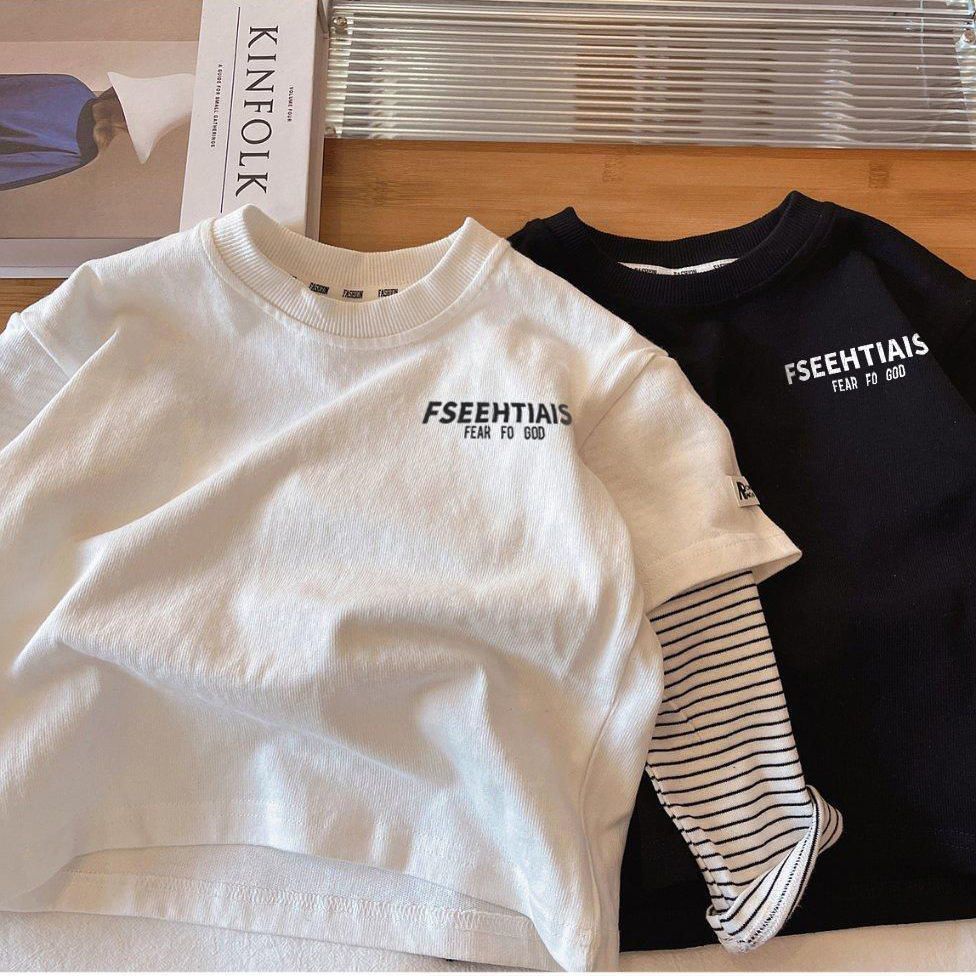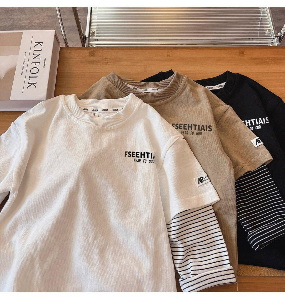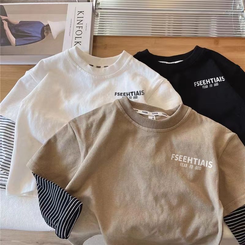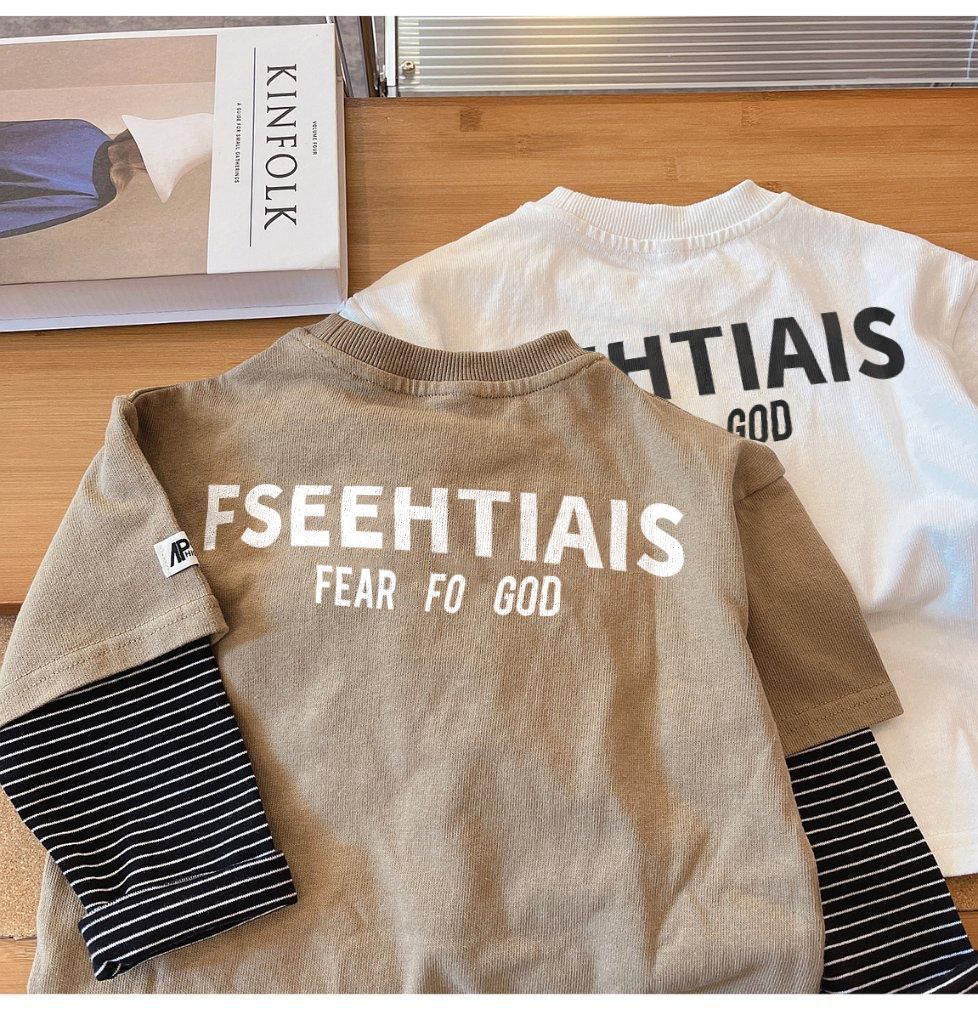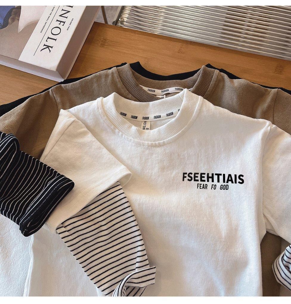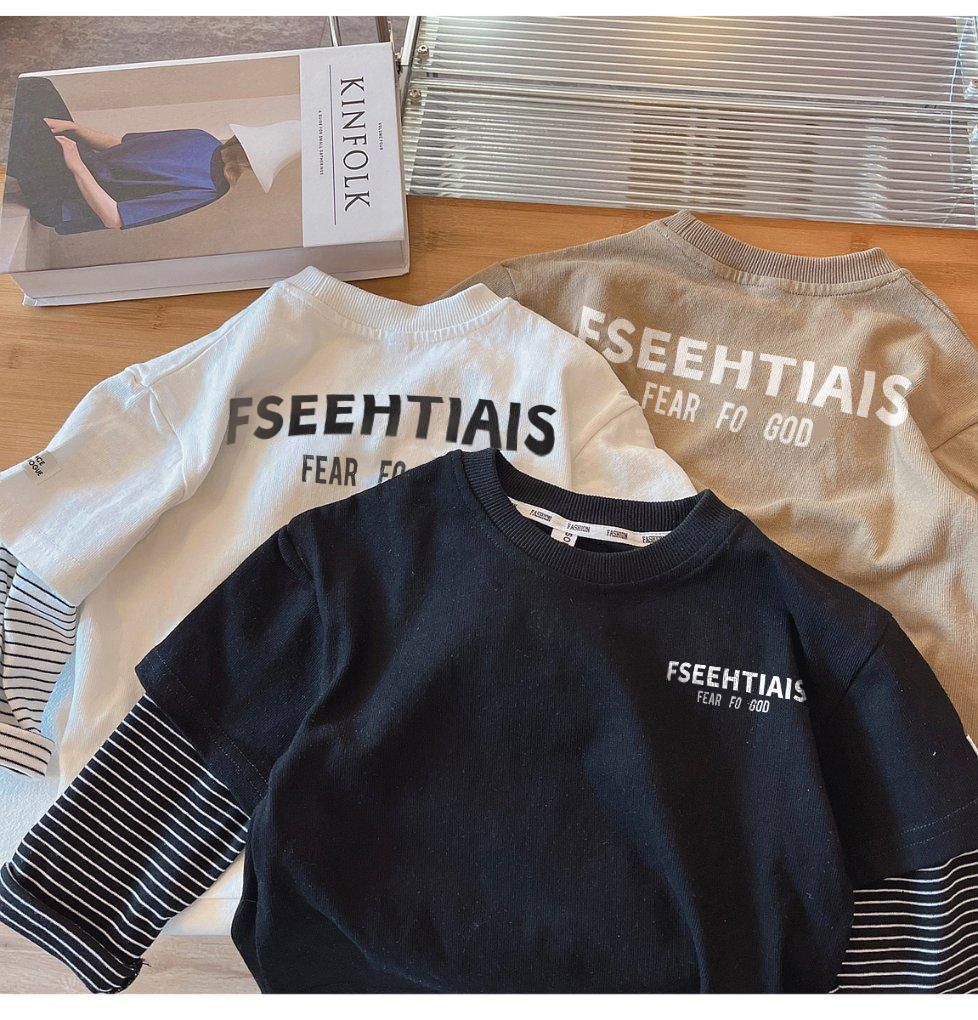 남아 긴팔 티셔츠 봄 2023 새로운 어린이 가짜 투피스 탑 남아 베이비 베이스 셔츠 봄과 가을스토어 가기