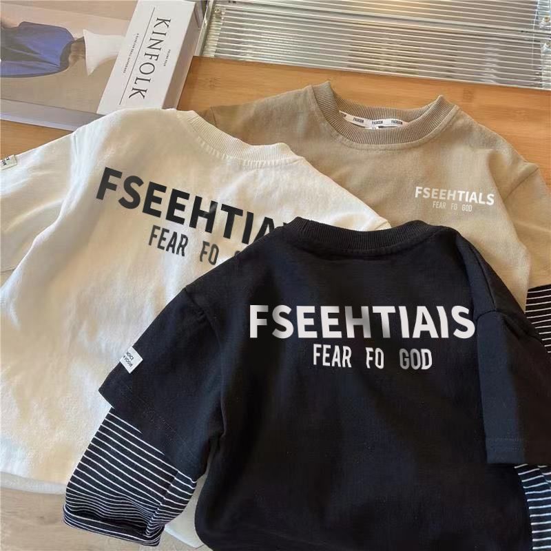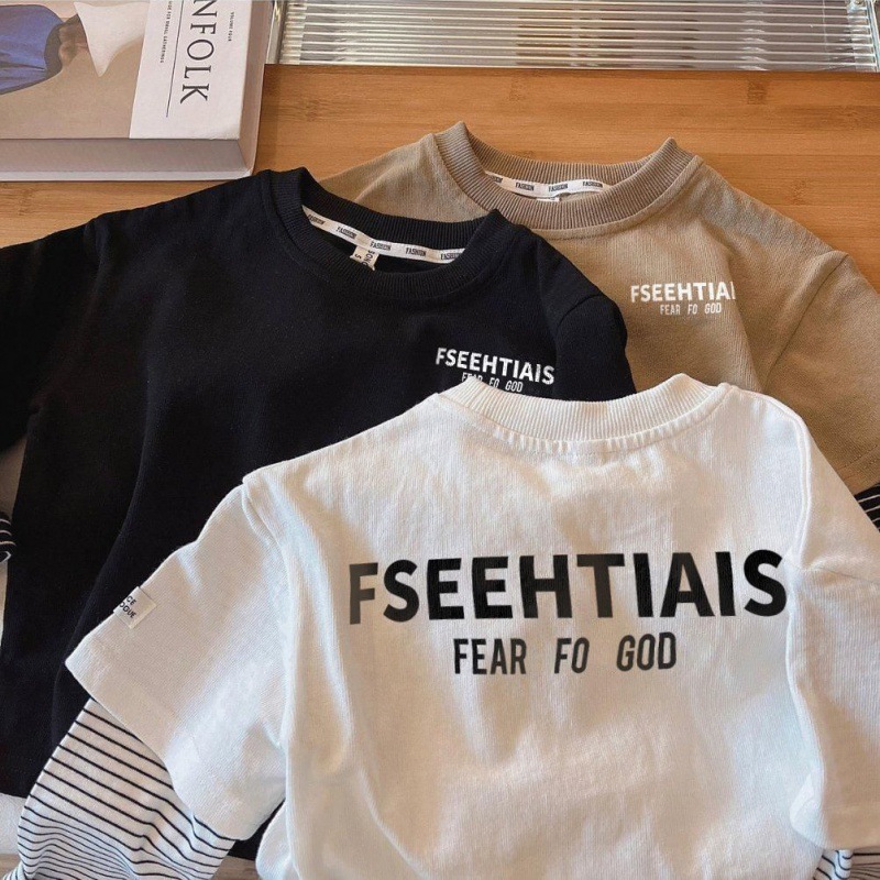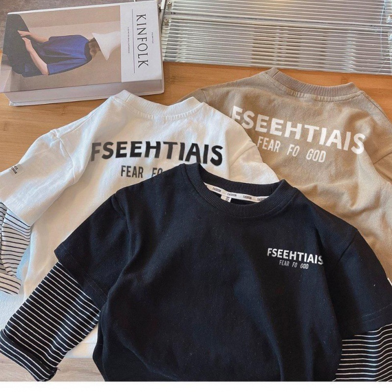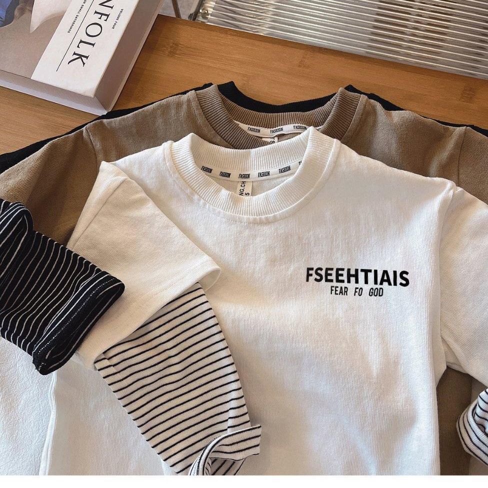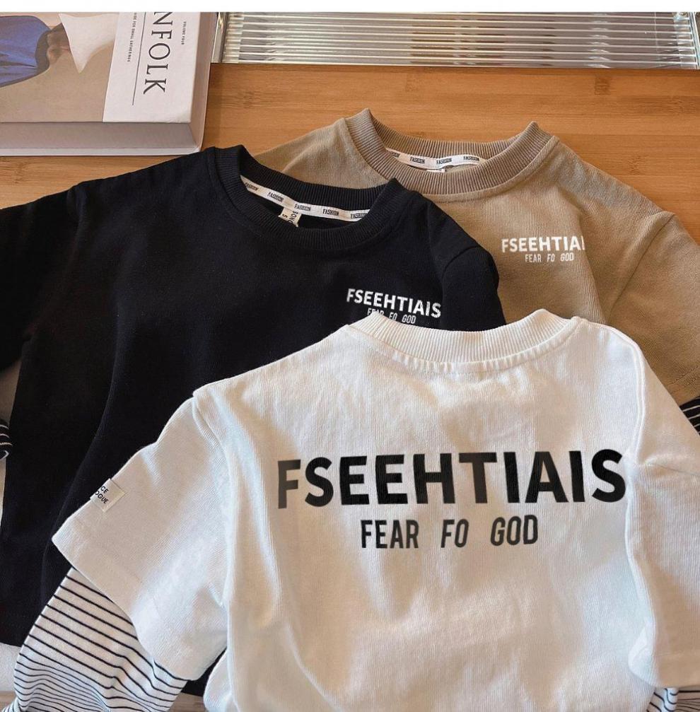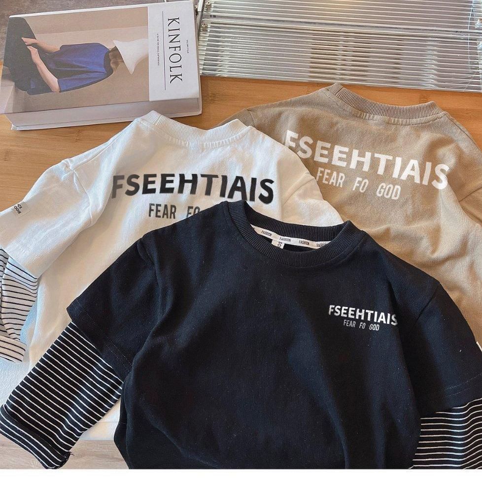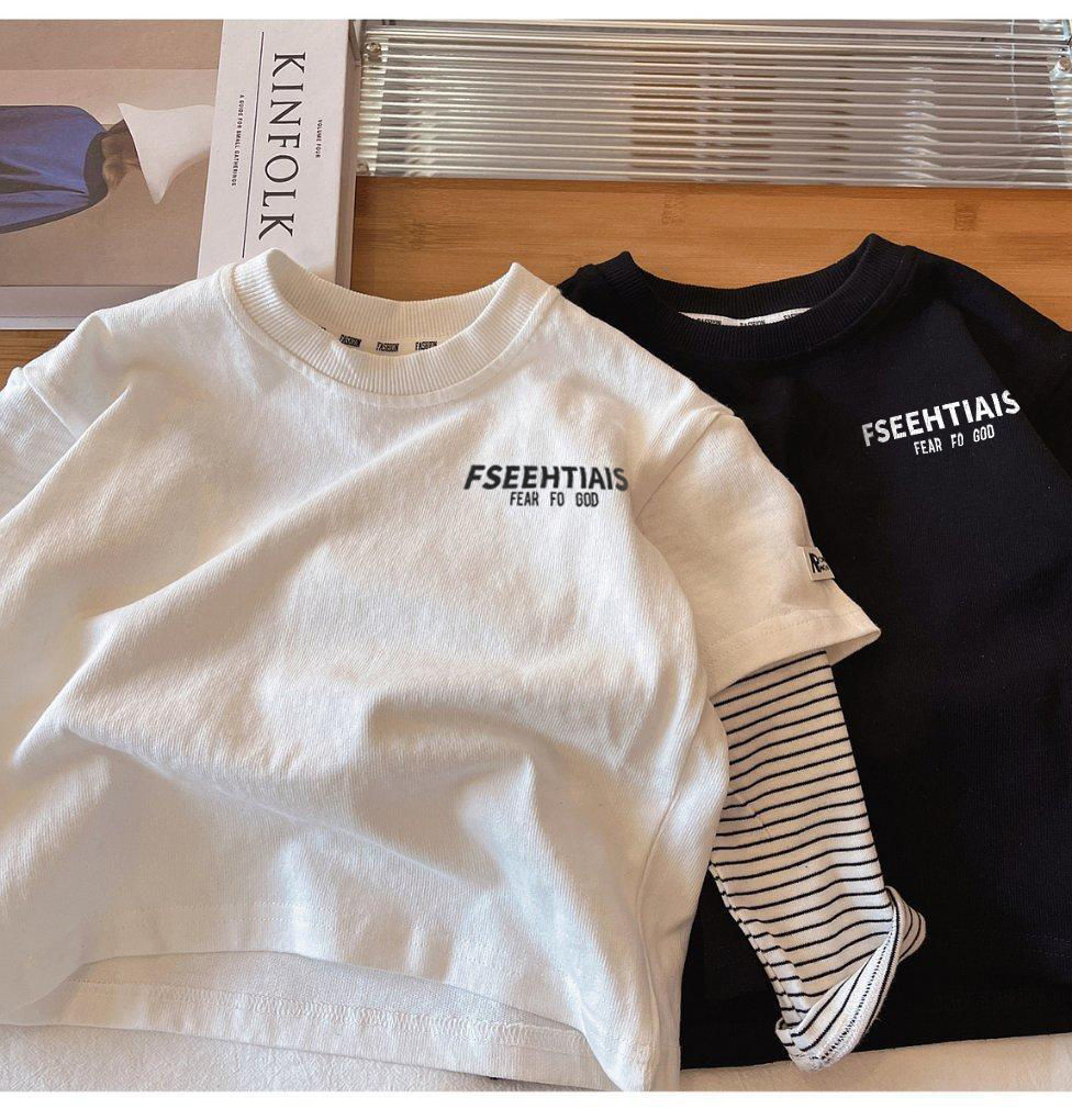 남아 긴팔 티셔츠 봄 2023 새로운 어린이 가짜 투피스 탑 남아 베이비 베이스 셔츠 봄과 가을스토어 가기