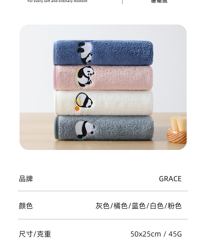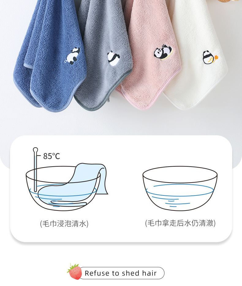 Jialiya 수건 클래스 A 어린이 수건 만화 팬더 자수 흡수성 어린이 수건 산호 벨벳 흡수성 제조업체 재고 있음