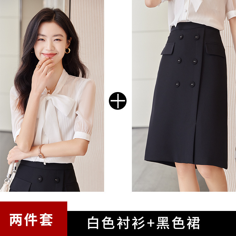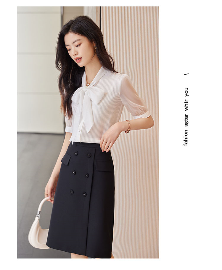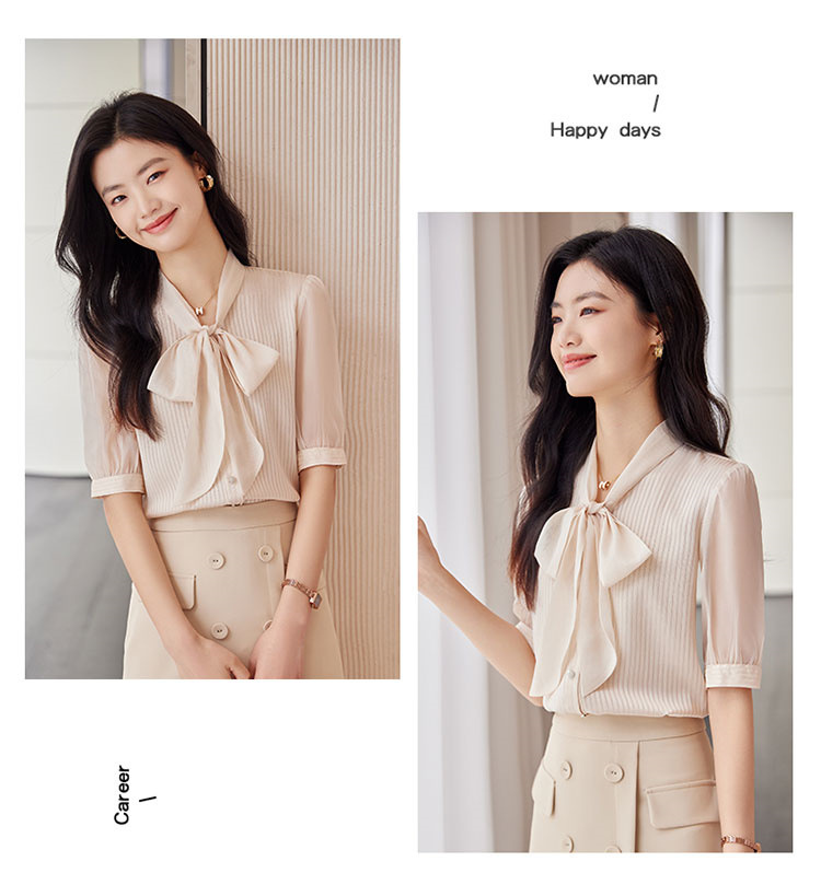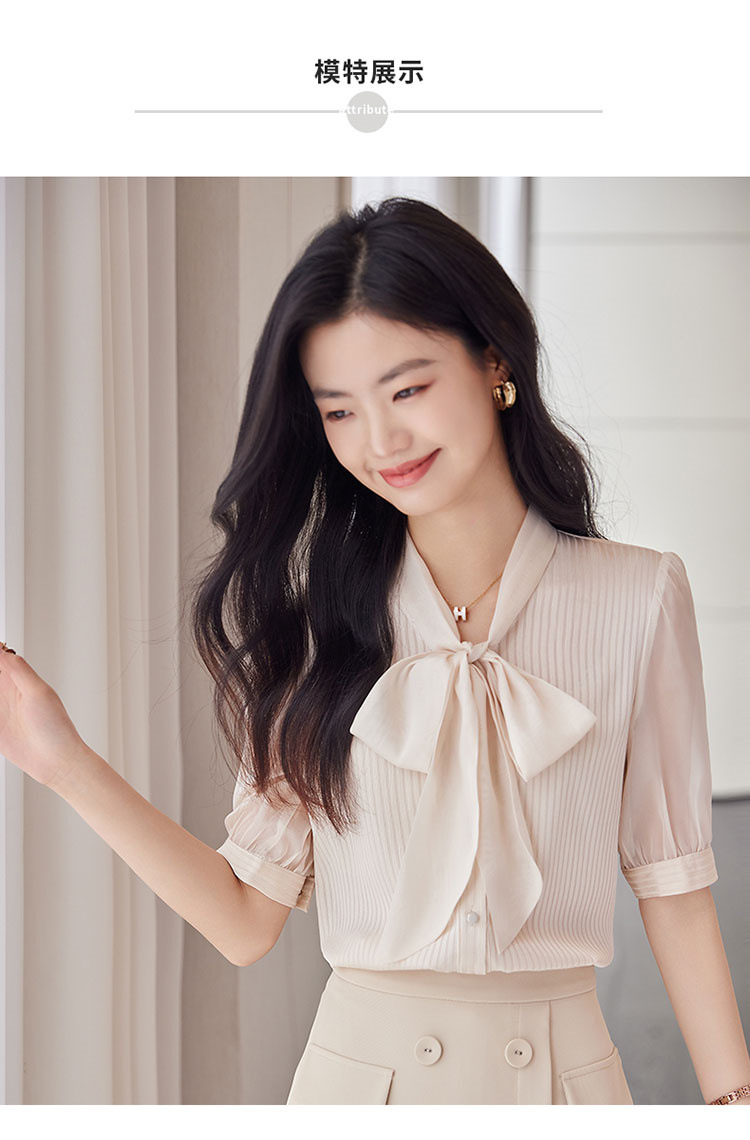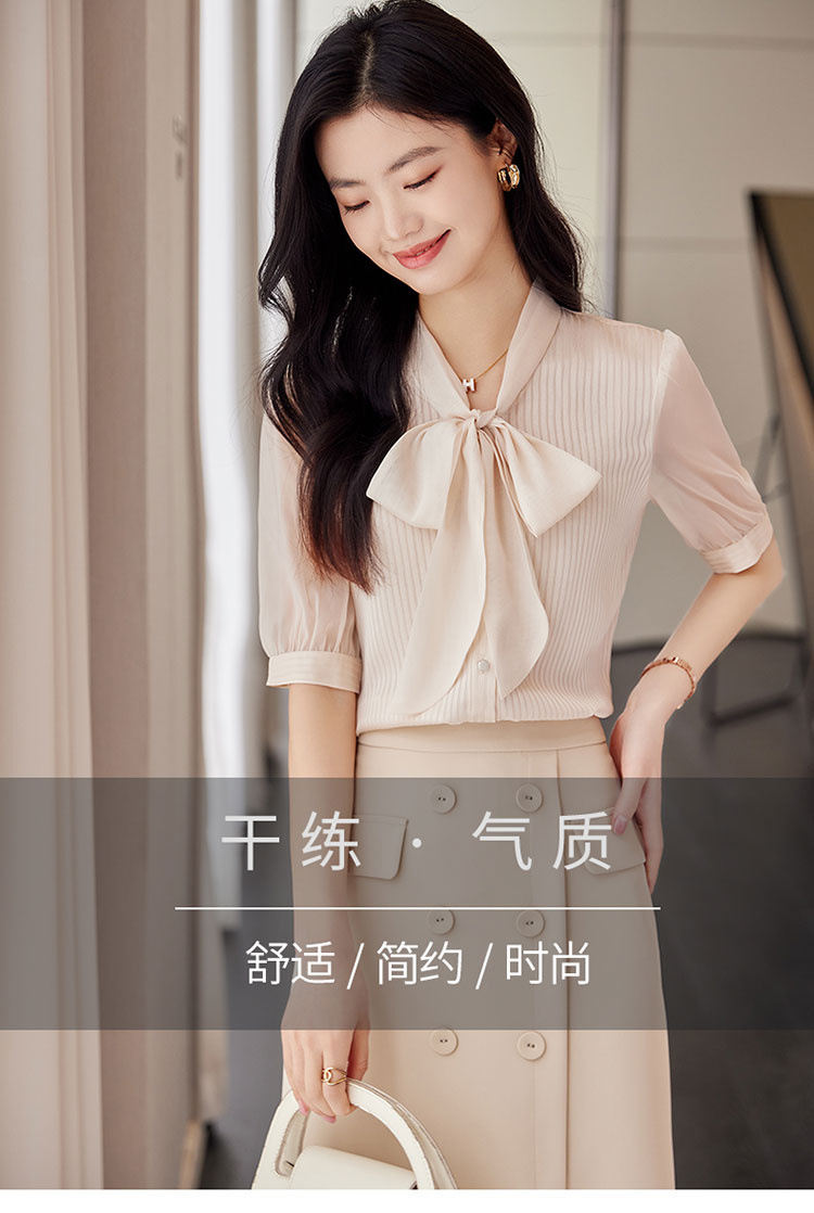 세븐 밸리 니앙 화이트 쉬폰 리본 셔츠 여성용 하이 센스 하프 슬리브 디자인 센스 전문 셔츠 봄과 여름 탑