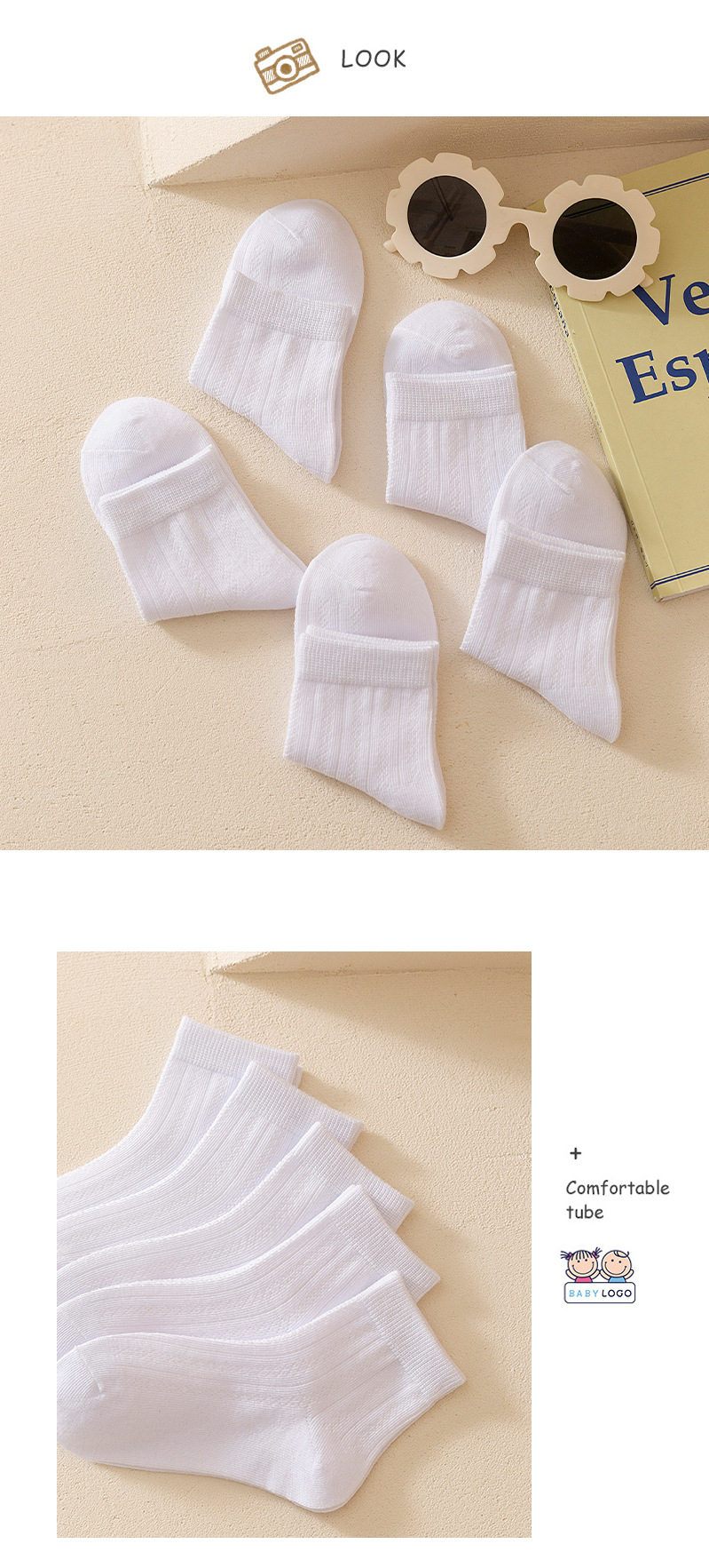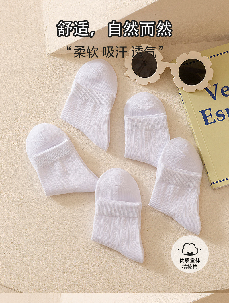 小巴兔儿童白色袜子春夏薄款小学生白袜子男童女童运动棉袜-恢复